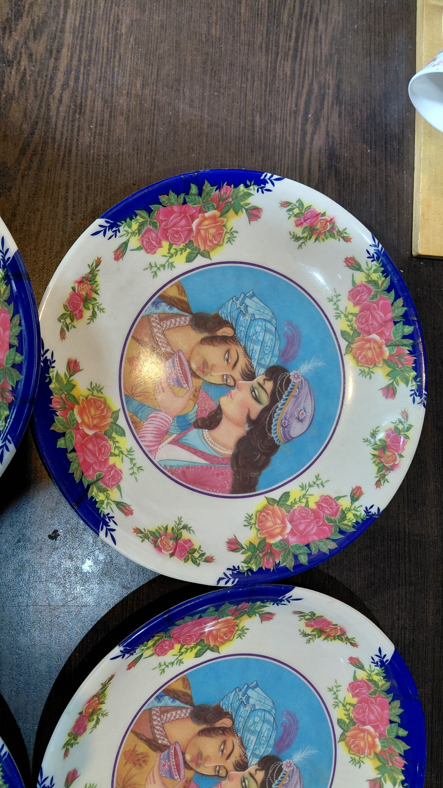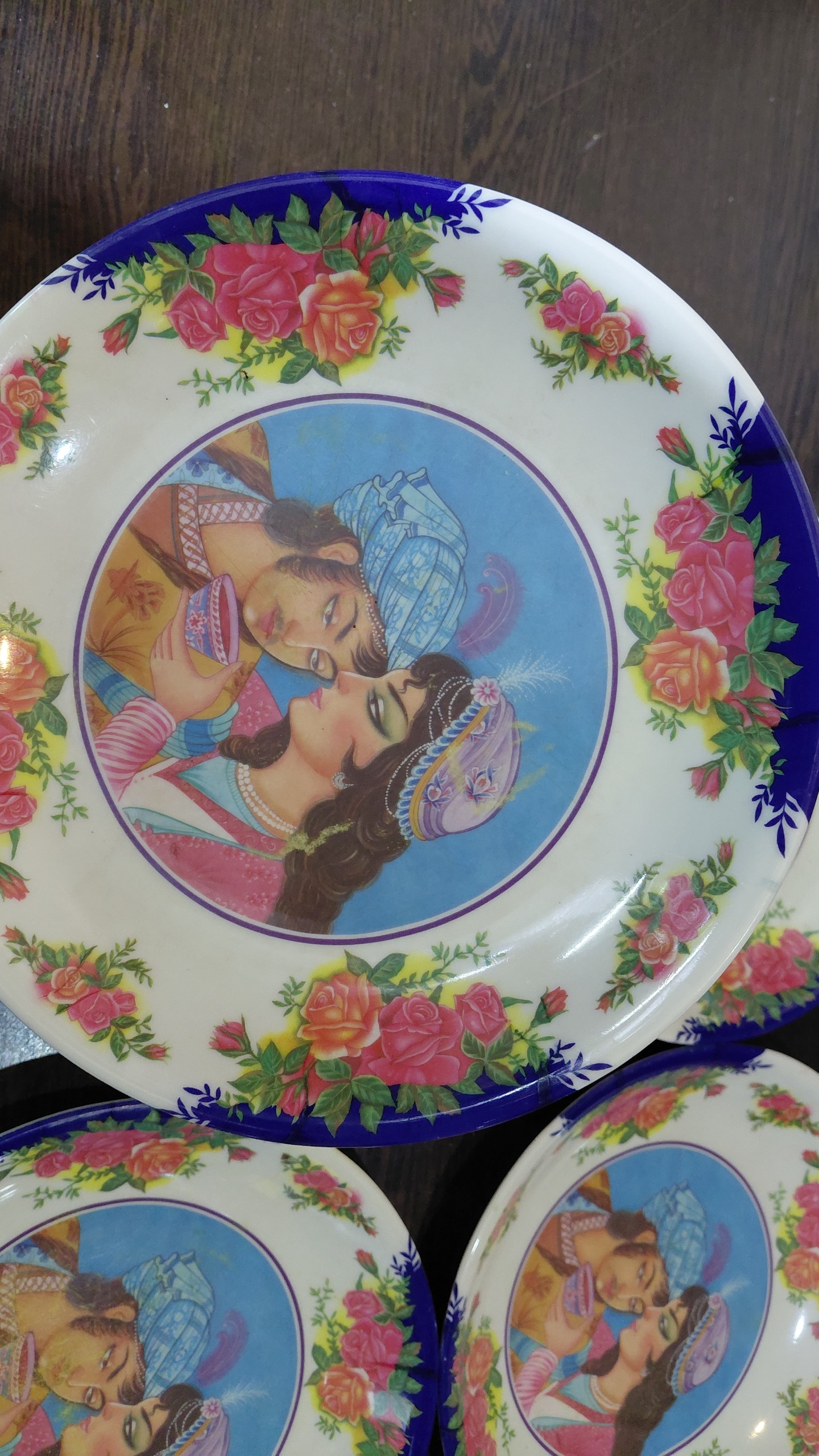 تعداد 4 عدد بشقاب خورشت خوری ملامین با نقش لیلی مجنون کم نظیر به قطر 22 سانت.فروش بصورت یکجا.