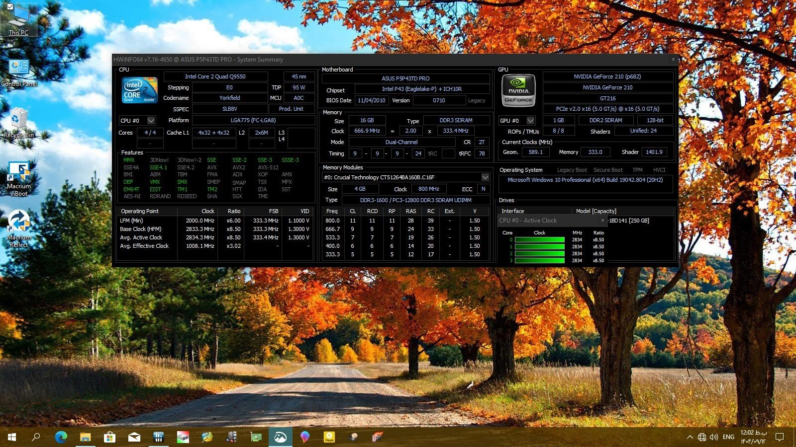 مادربرد دارای چیپ Intel P43بوده و طبق عکس های3و4 تست اولیه با ویندوز 11 و CPU چهار هسته ای Q9550و16 گیگ رم DDR3گرفته شده)