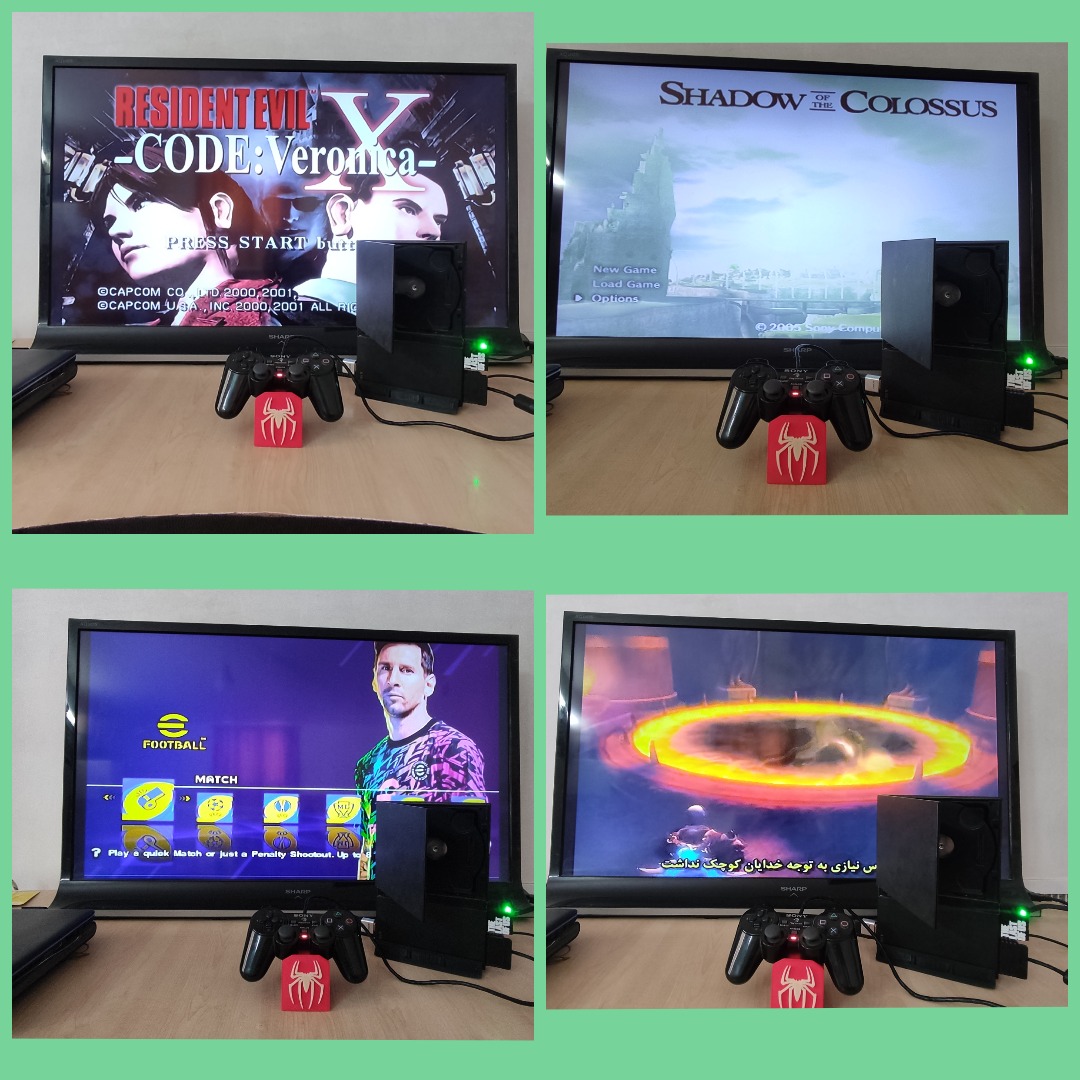 نکته سوم، کارایی این ماژول فقط شناساندن بازیها با سرعت بالاتر از لنز وهارد وusb به کنسول میباشد درنتیجه کارکرد مموری کارتهای کنسول (8mb) فقط ذخیره سیو بازیها واجرای برنامه کپیخور کنسول میباشد، این نکته را برای دوستانی که سوال کردن توضیح دادم.