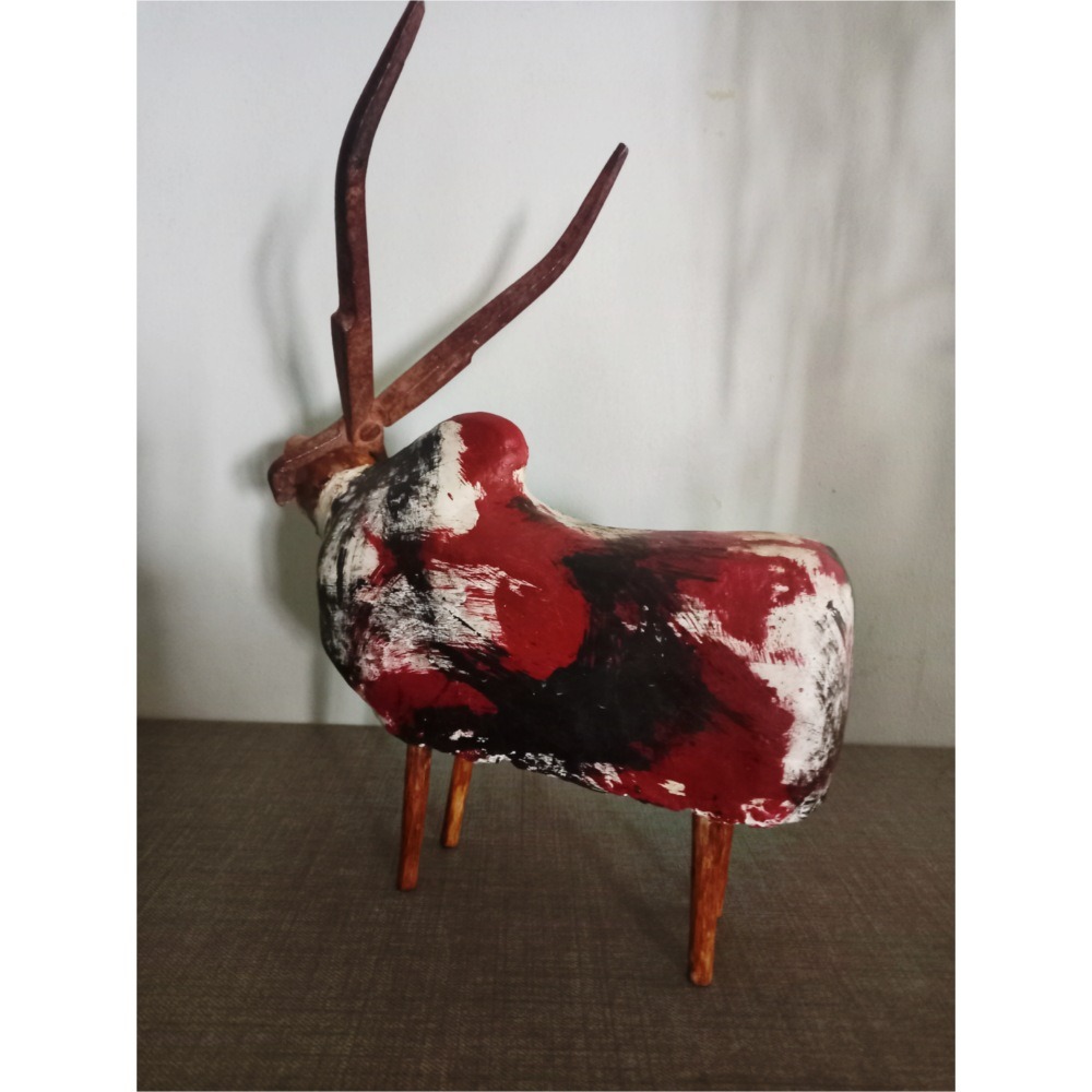 این مجسمه با نام " گاو خونی" یک برداشت مدرن از پیکره گاو است با رنگ آمیزی به سبک نقاشیهای آبستره که اشاره دارد به ناله و فریاد گاو از تقدیر خود.