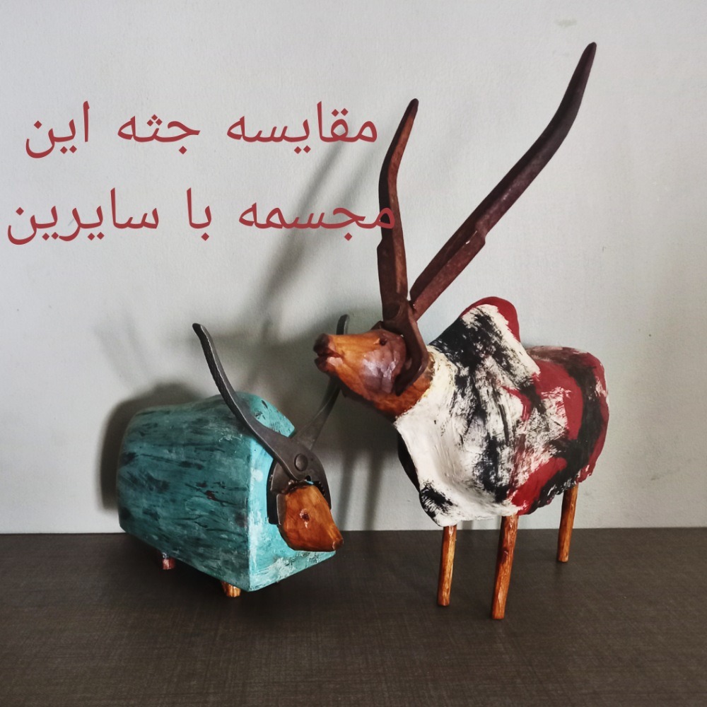 این کار به همراه مجسمه دیگر موجود در پیج که با همین سبک و سیاق کار شده است، یک مجموعه دوتایی را تشکیل میدهند که ابعادی تقریبا برابر و بزرگتر از بقیه مجسمه های دست ساز من دارند و به همین نسبت قیمت بالاتری نسبت به دیگر پیکره ها دارند(مراجعه به تصویر مقایسه با یک مجسمه معمولی در آلبوم تصاویر).