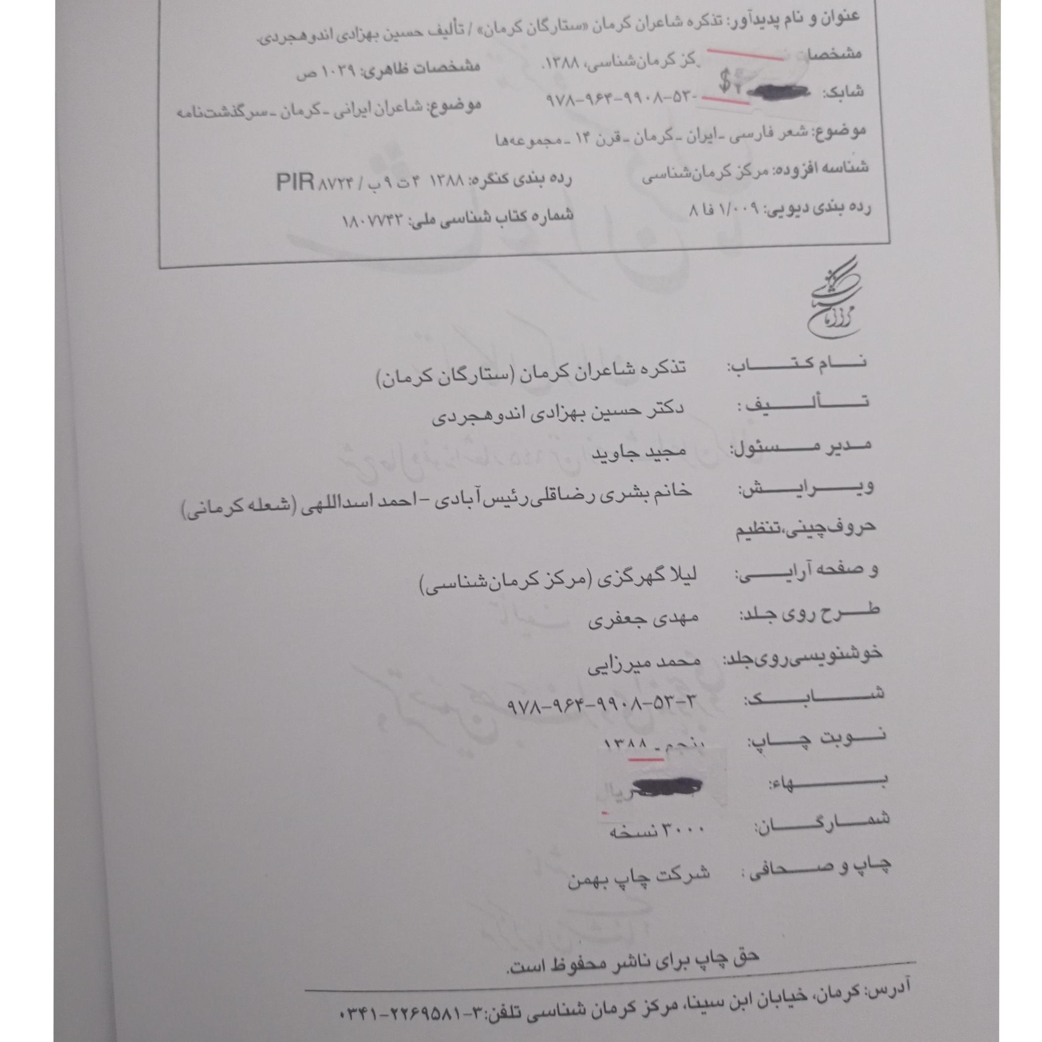 تذکره شاعران کرمان ( ستارگان کرمان)