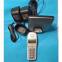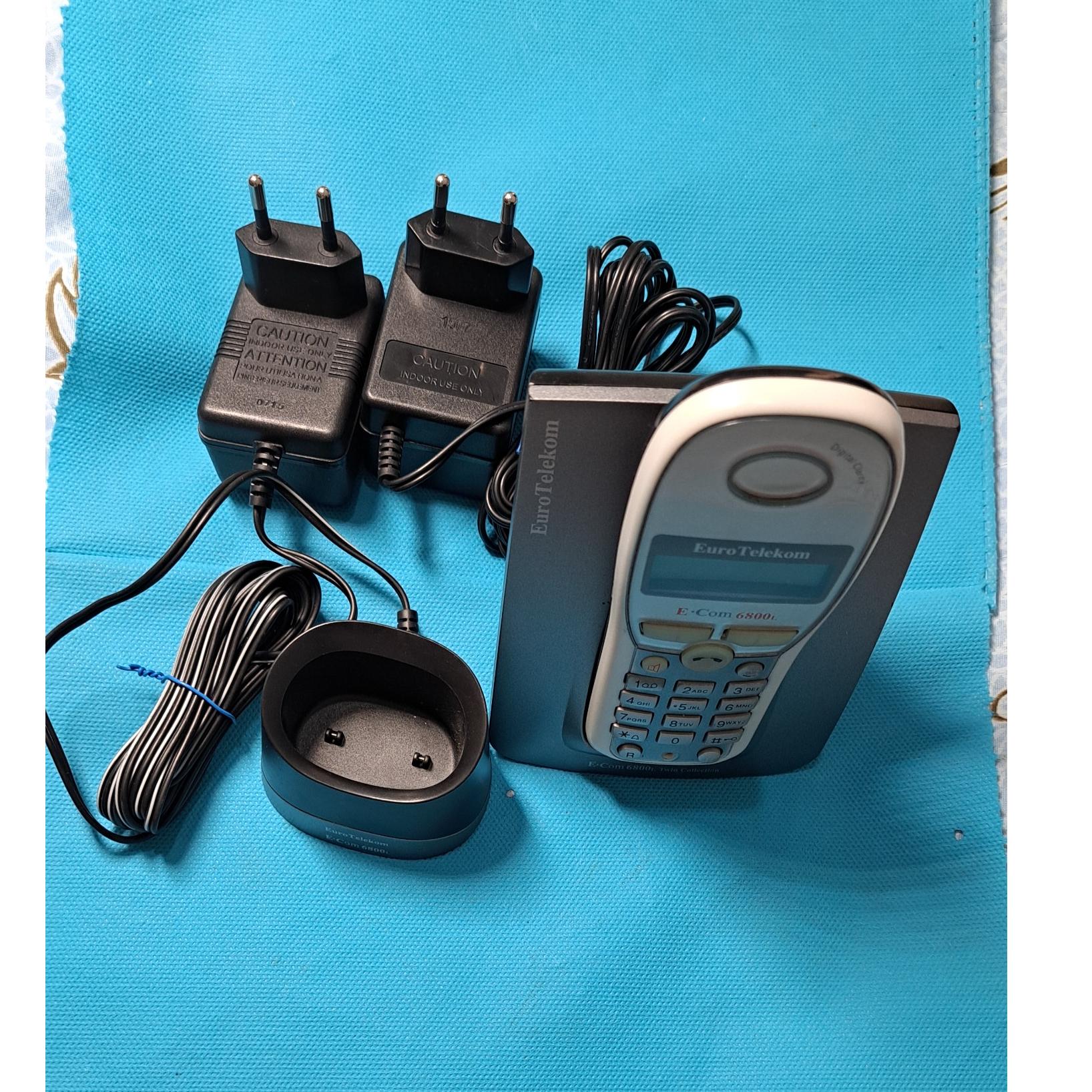 تلفن بیسیم یورو تلکام معمولا تلفن های تلکام آلمانی هستند اما روی خودش چیزی نزده تلفن بیسیم بیس سالم گوشی دارای آیفون وامکانات دیگر دارد که من چیزی نمی دانم دارای یک پایه شارژر ودستگاه مادر و2عدد شارژر میباشد تلفن خوبی هست ضمنا شماره 1شماره گیری تلفن کمی سفت هست که با کمی فشار راحت شماره میگیرد اما بقیه کلیدها روان وعالی هستند از نظر مکالمه سالم وسلامت پایه شارژر کوچک را میتوانید جدا از دستگاه مادر در هر جای دیگر یا اطاق دیگر قرار داده تا تلفن بیسیم شارژ شود ودیگر به دنبال شارژر بیسیم به دنبال تلفن مادر نباشید این یکی دیگر از مزایای خوب این تلفن بیسیم هست ضمنا 2تا باتری قلمی شارژی میخورد اما بدون باتری ارسال میشود