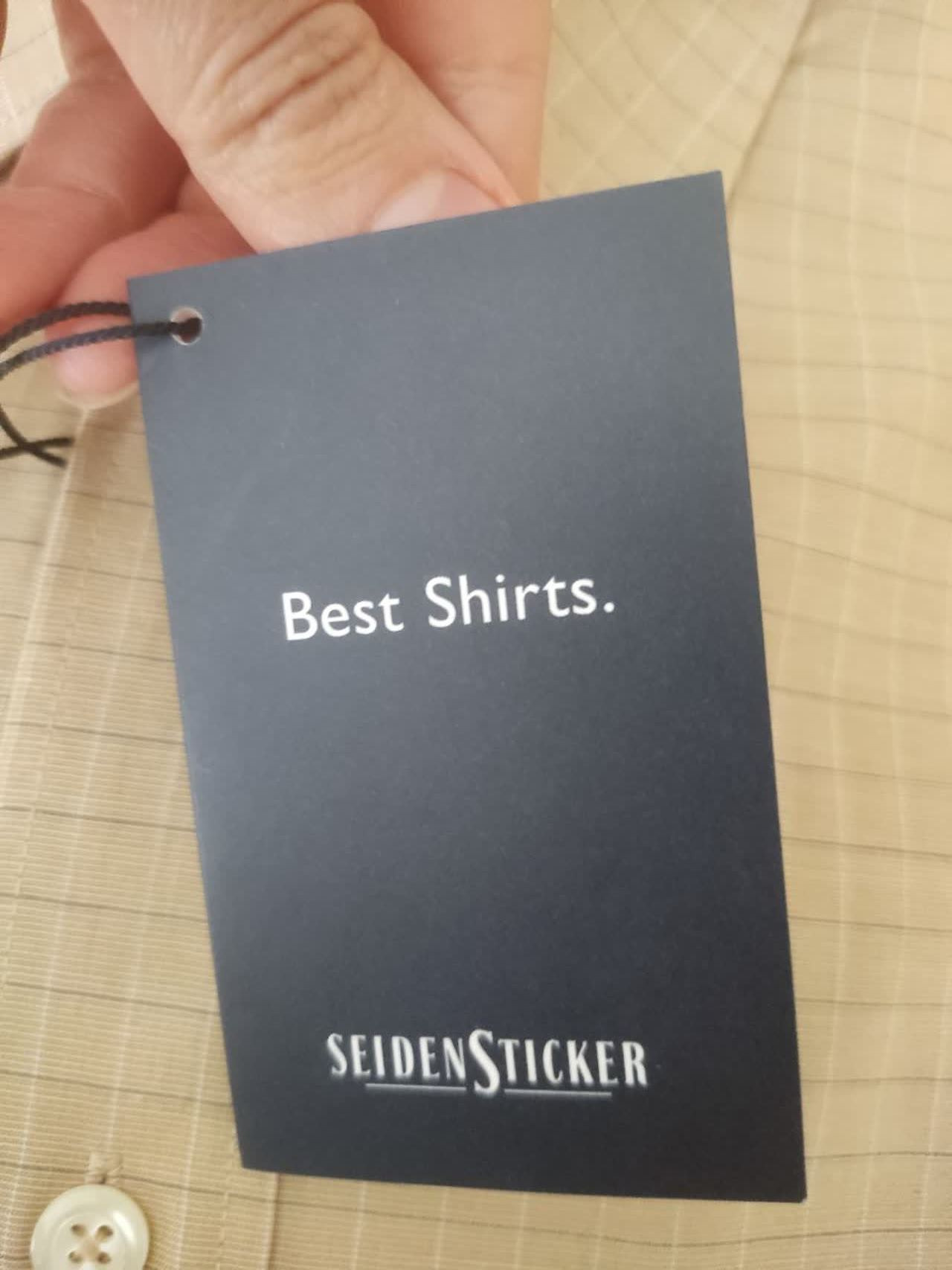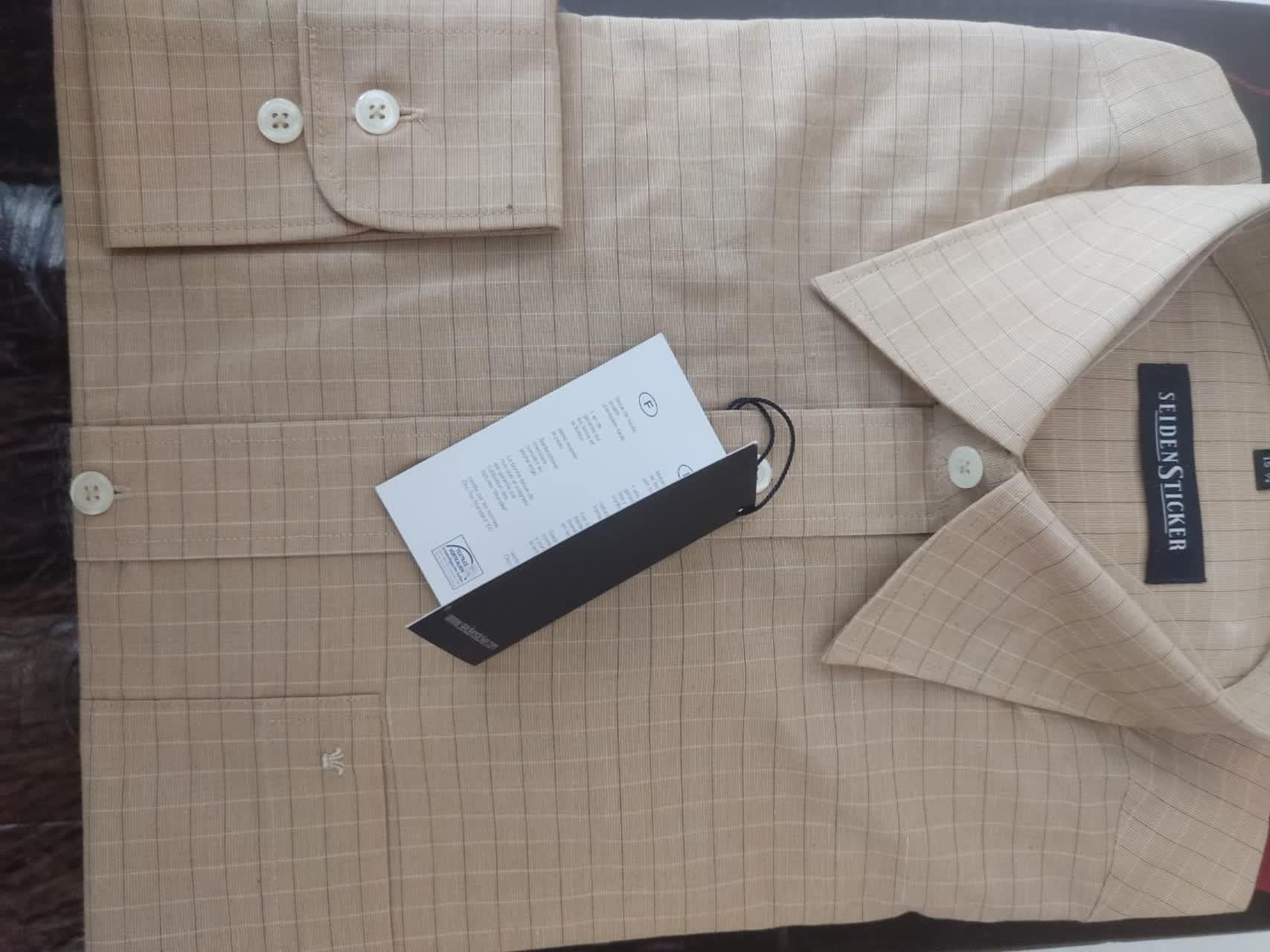 پیراهن مردانه از برند SEIDEN STICKER برند و قیمت نیاز به توضیح نداره یه سرچ کافی است تا اطمینان پیدا کنید( بسیار زیر قیمت گذاشته شده) آلمانی اصل مسافری آورده شده چهارخانه ریز رنگ بژ نسکافه ای استین بلند یقه کلاسیک کاملا نو سایز 39(15 1/2)