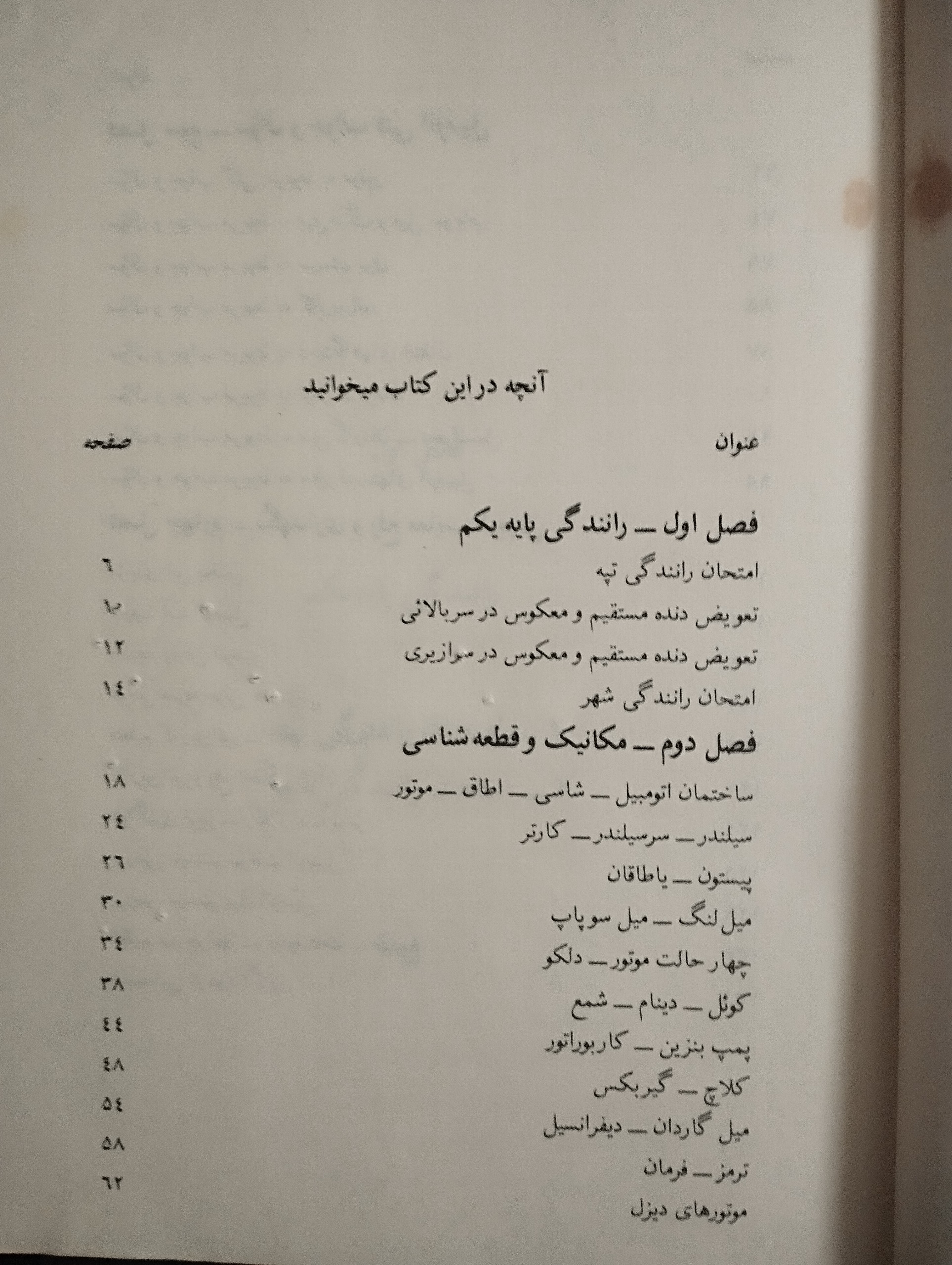 مکانیک عمومی اتومبیل رانندگی پایه یکم
