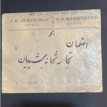 یک عدد پاکت کلکسیونی سایز بزرگ ( 15 در 12 سانتی متر ) قدمت قاجاری مربوط به تجارتخانه جمشیدیان در شیراز .