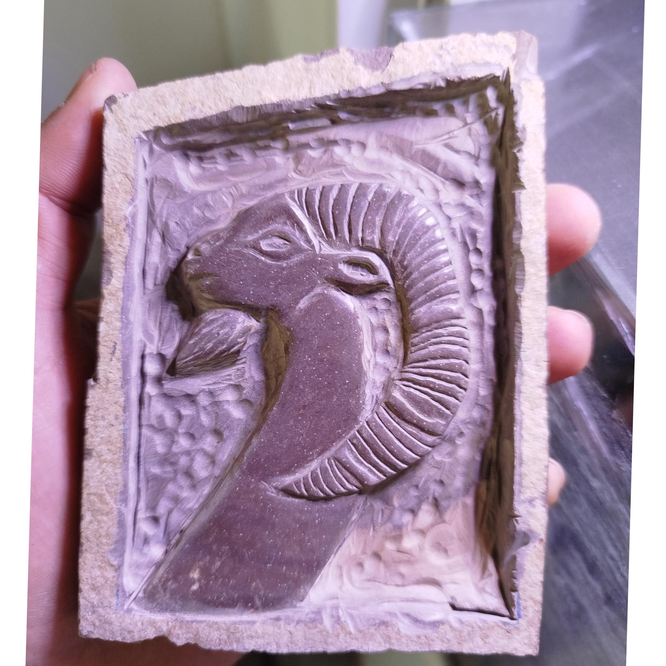 طرح باستانی قوچ که بروی سنگ بازالت تراش خورده