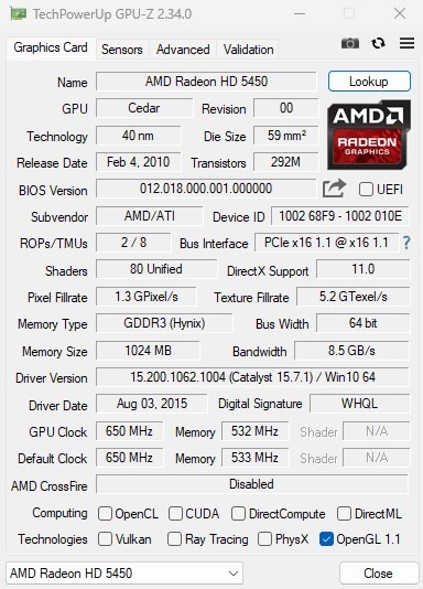 گرافیک 5450 DDR3