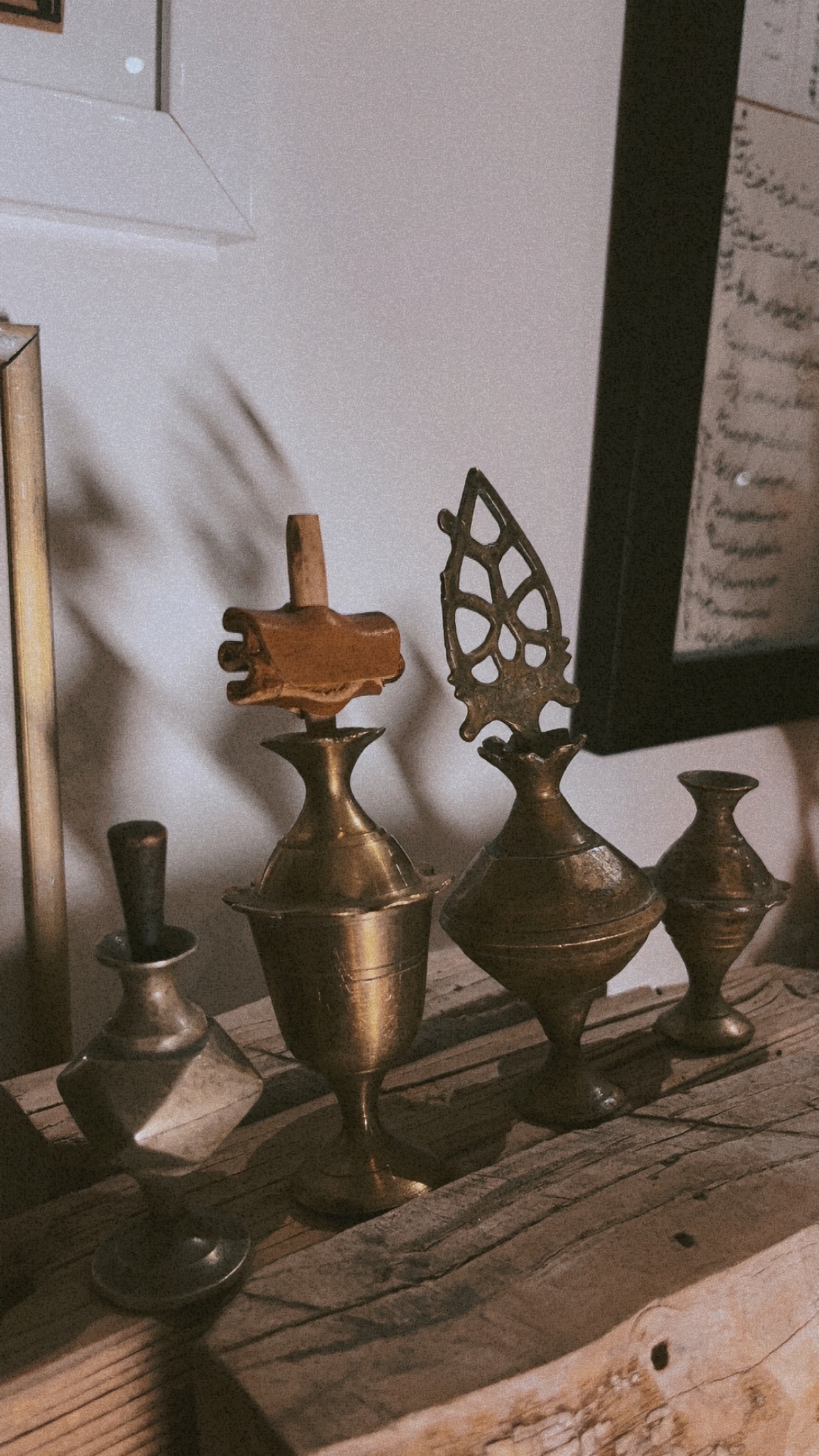 مجموعه 5 عددی سورمه دان های برنجی رنگ طلایی بسیار قدیمی و خاص