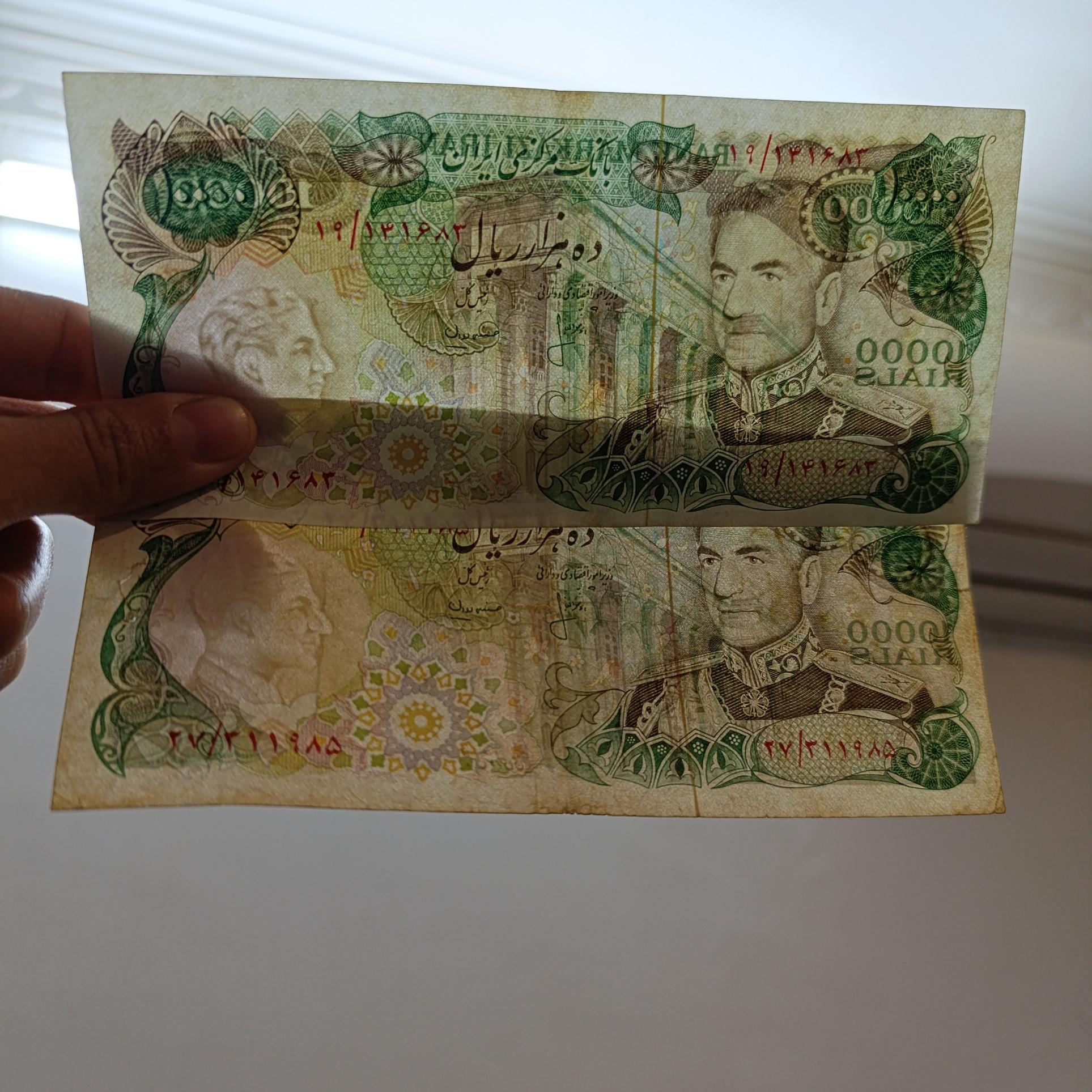 دوتک اسکناس 10000ریالی پهلوی کمیاب سری سیزدهم عکس با نور گرفته شده طبق کارشناسی و تجربه خودخرید کنید