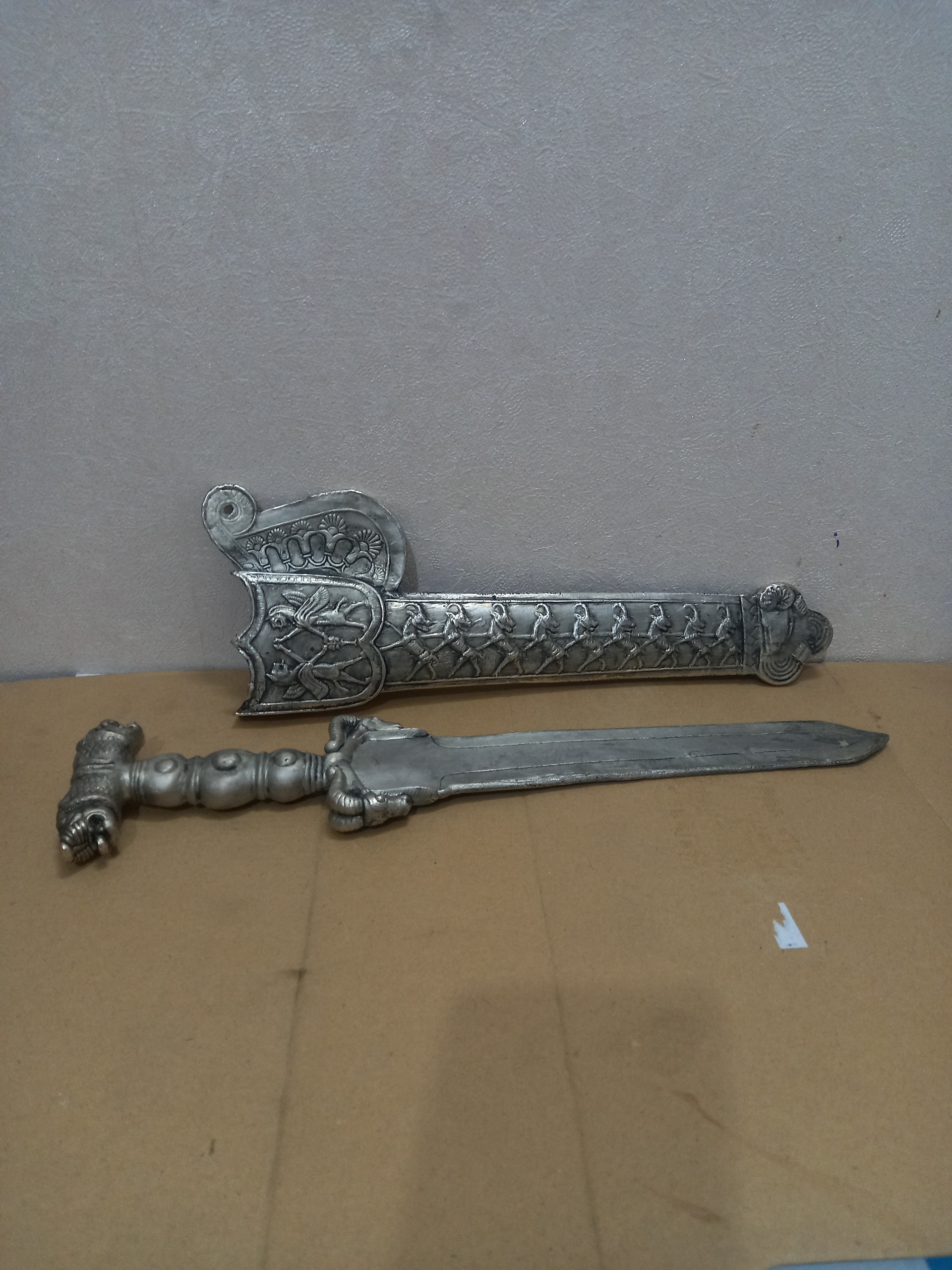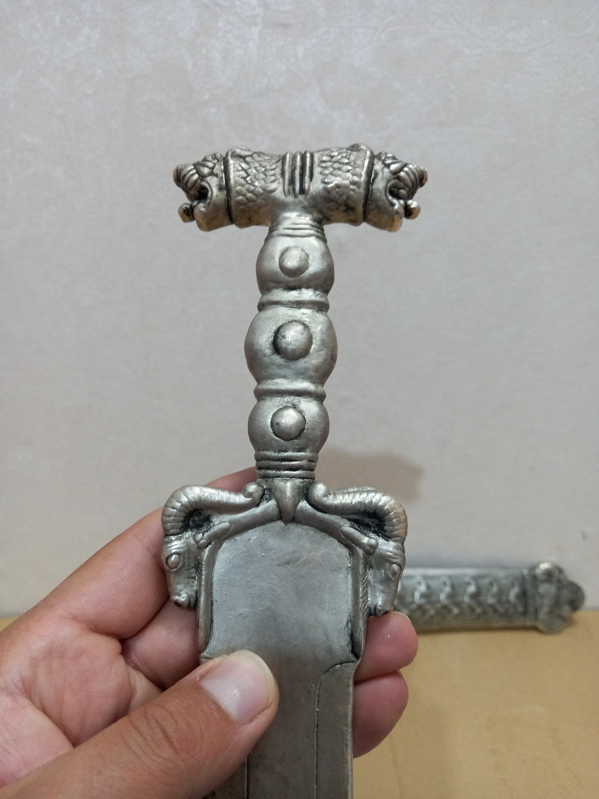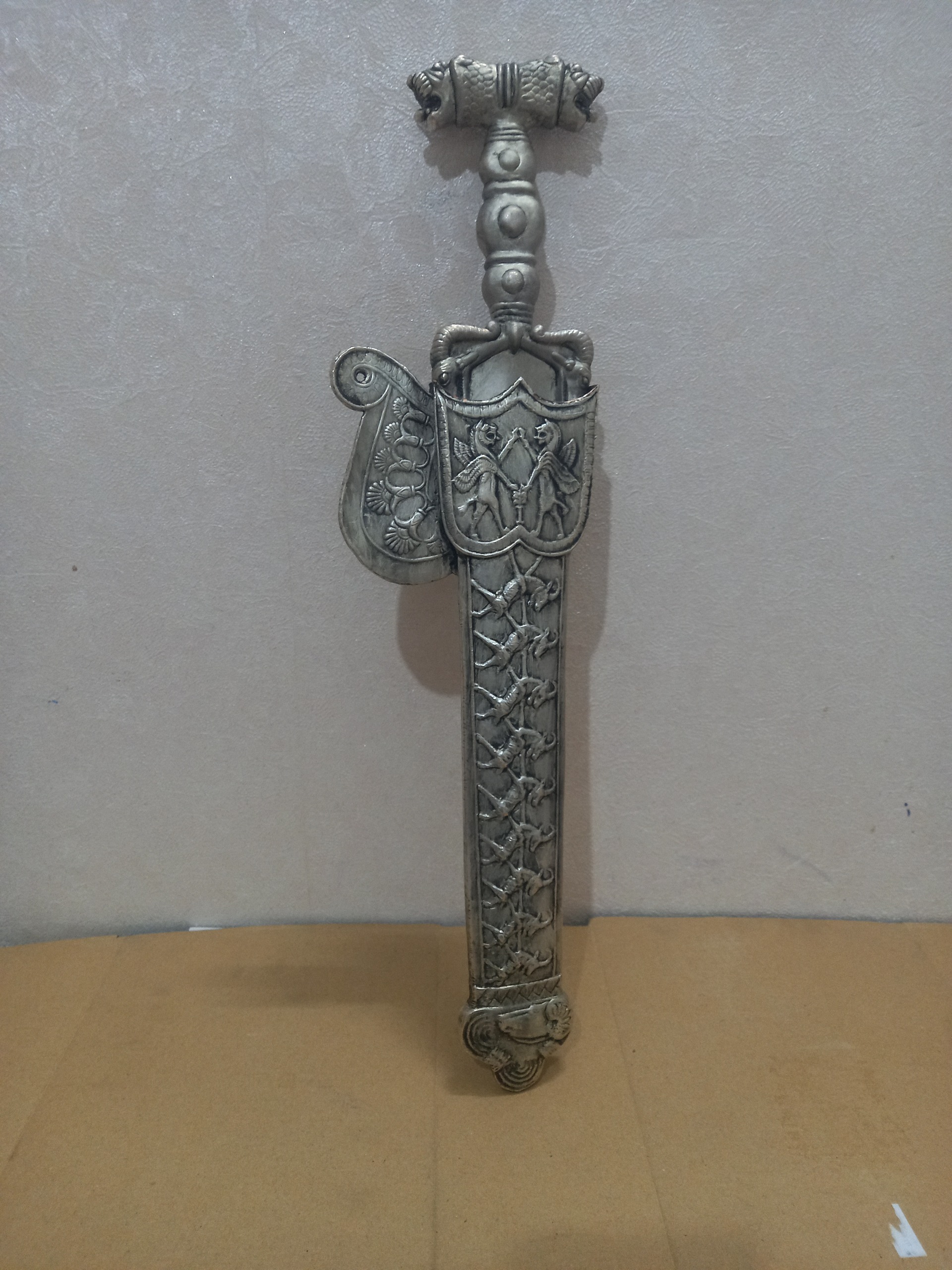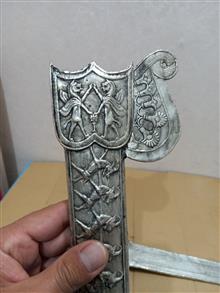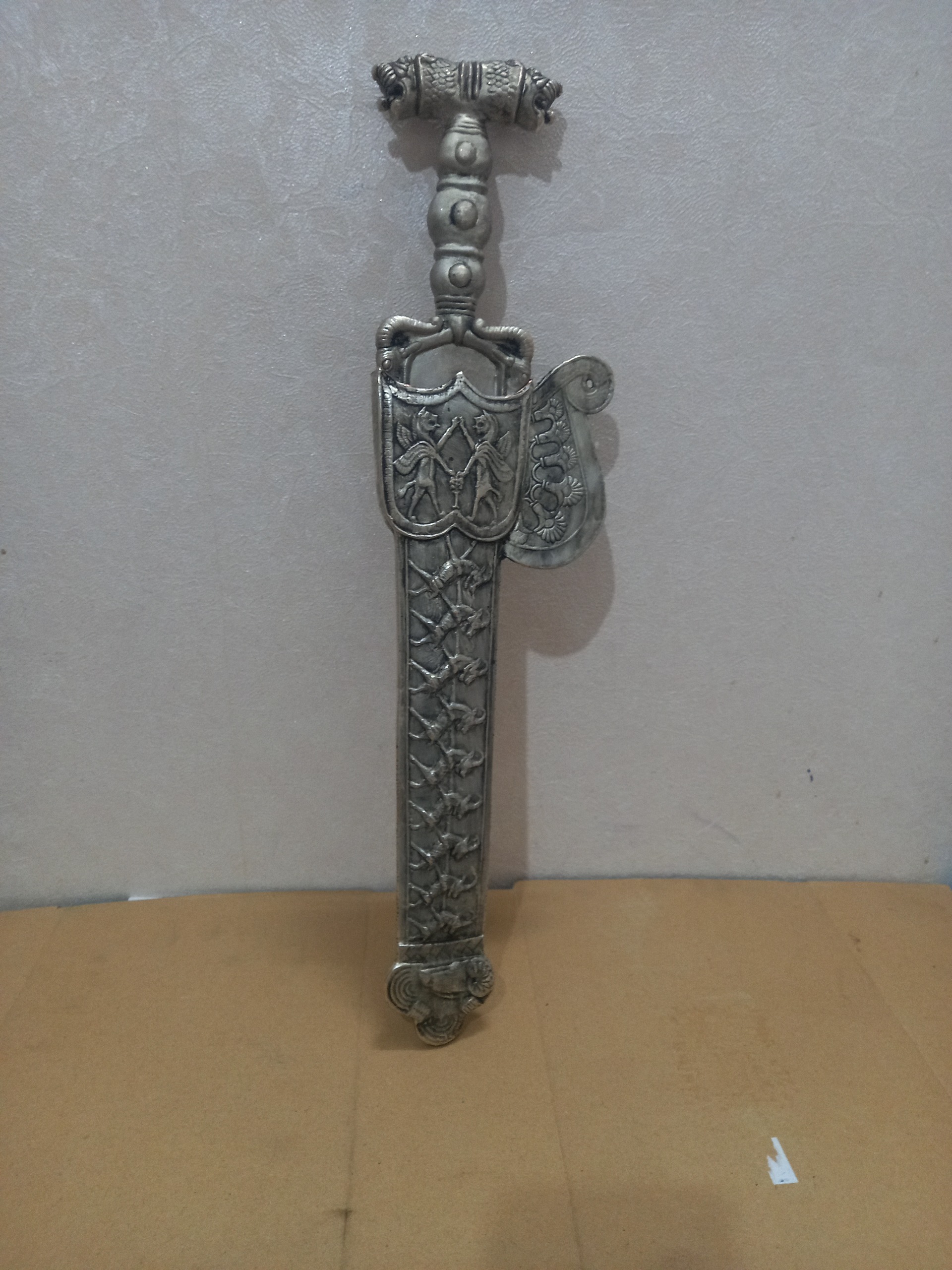 جنجر،شمشیر،دشنه مس ابکاری نقره ای با طراحی بینظیر وخاص درجه1 نقش برجسته کارشده کلکسیونی وخاص اندازه با غلاف 40سانت دکوری وهدیه ماندگار