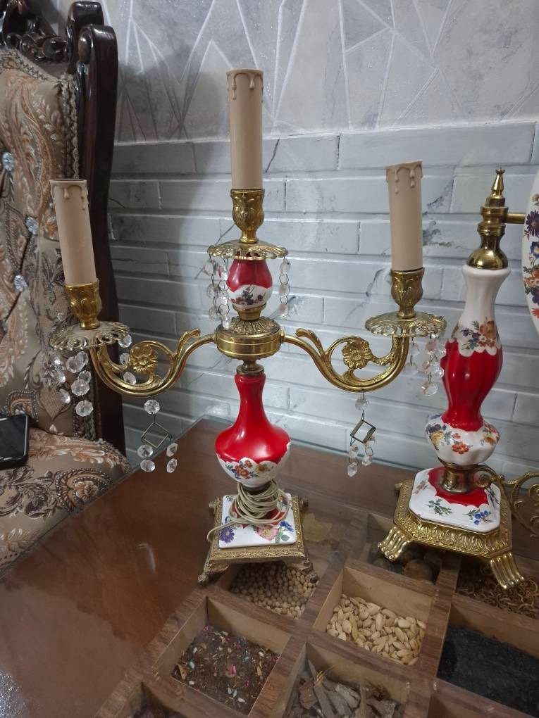 آینه و شمعدان سرامیکی گل قرمز قدیمی کاملا سالم و بی نقص .