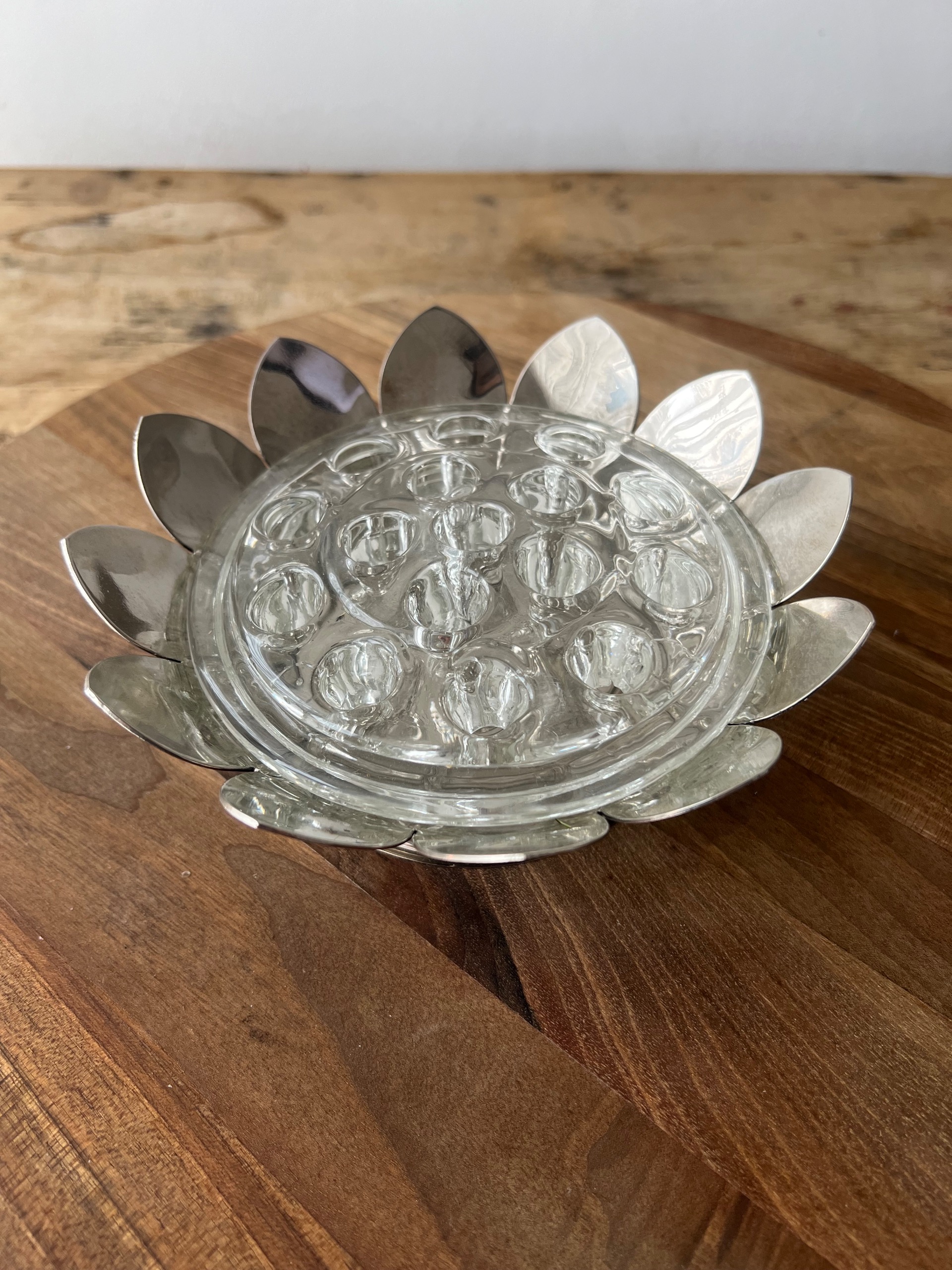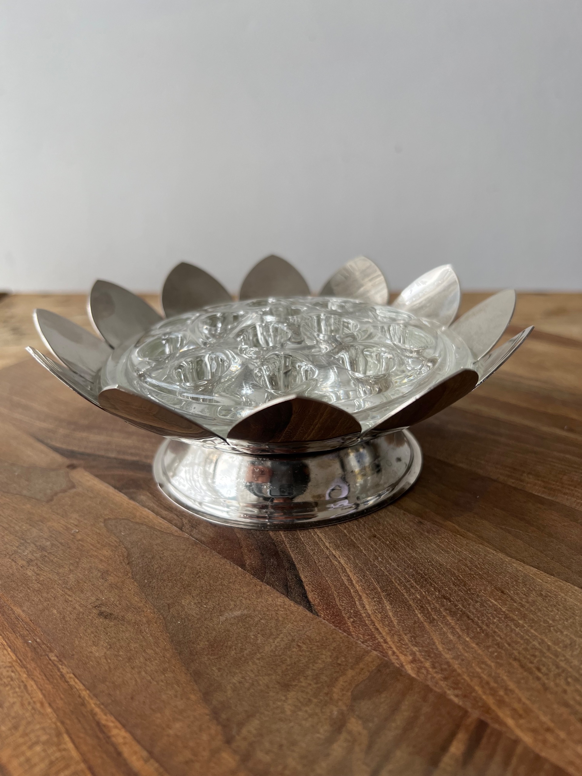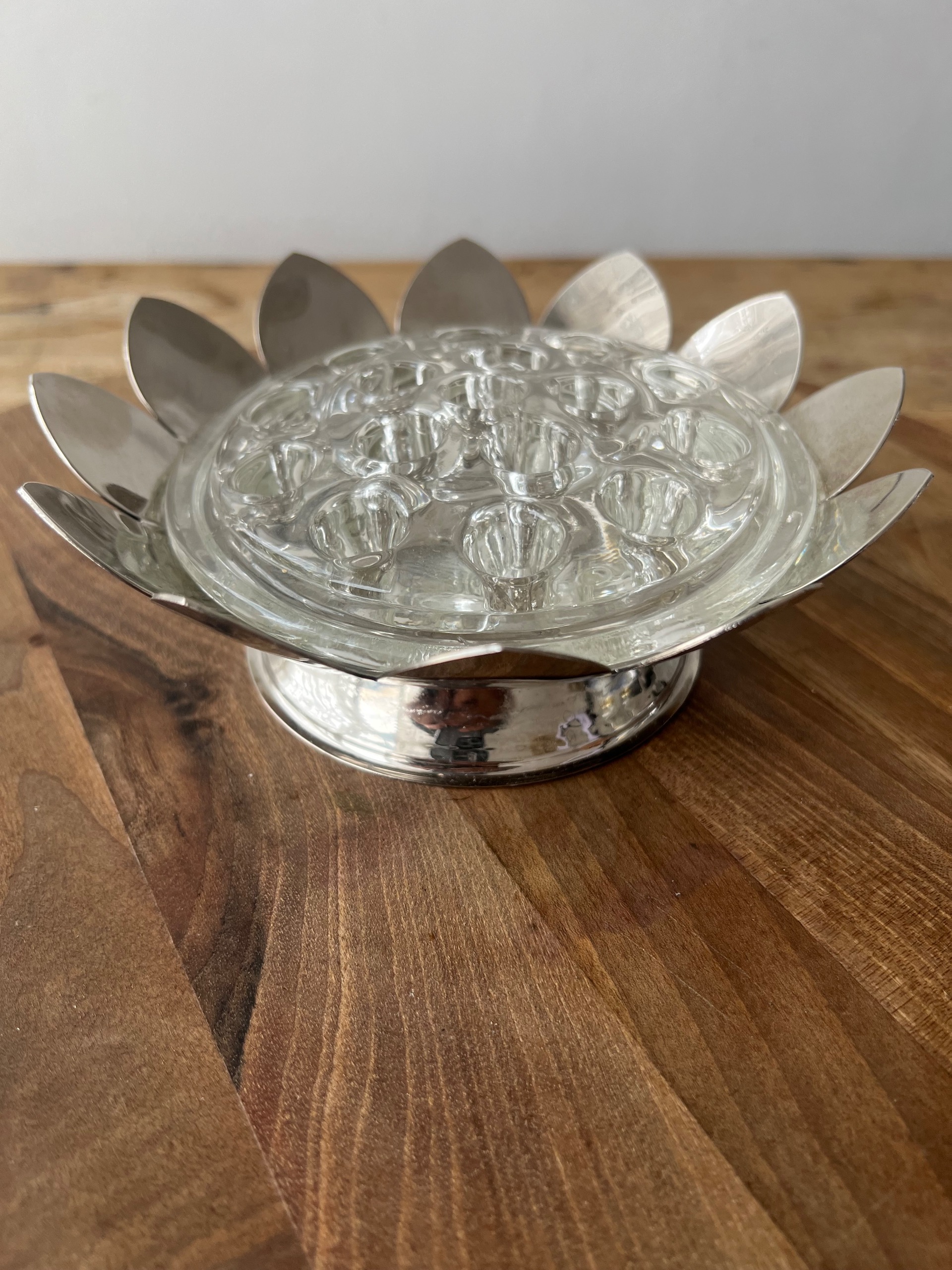 کانز سیلور پلیت با کریستال فابریک طرح لاله بسیار سنگین وزن کاملا سلامت (ظرف گل های تازه ) با قطر 17cm