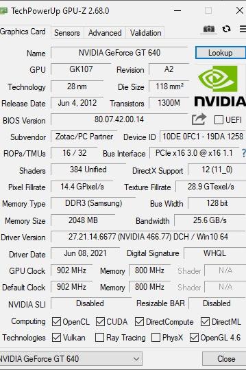 گرافیک 2 گیگ ZOTAC GT640 DDR3 128bit