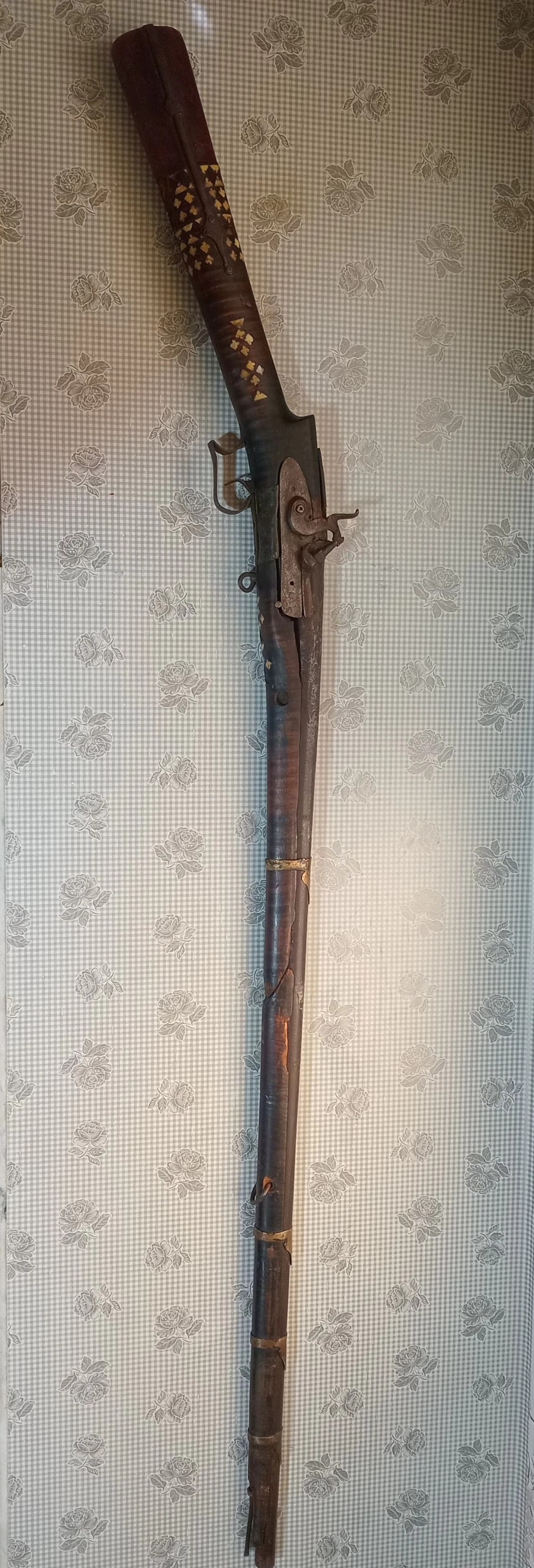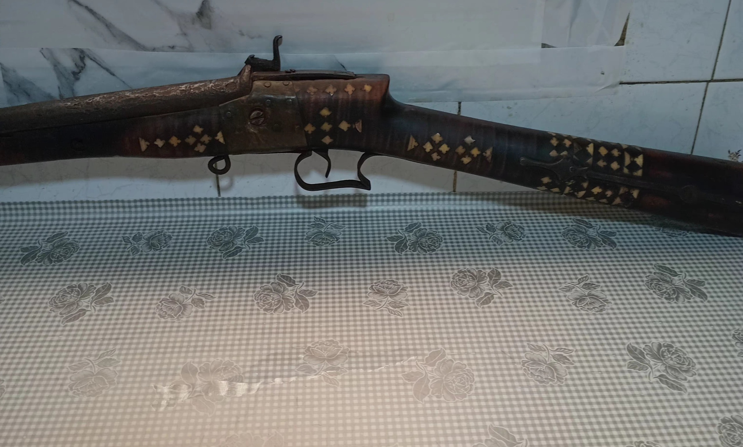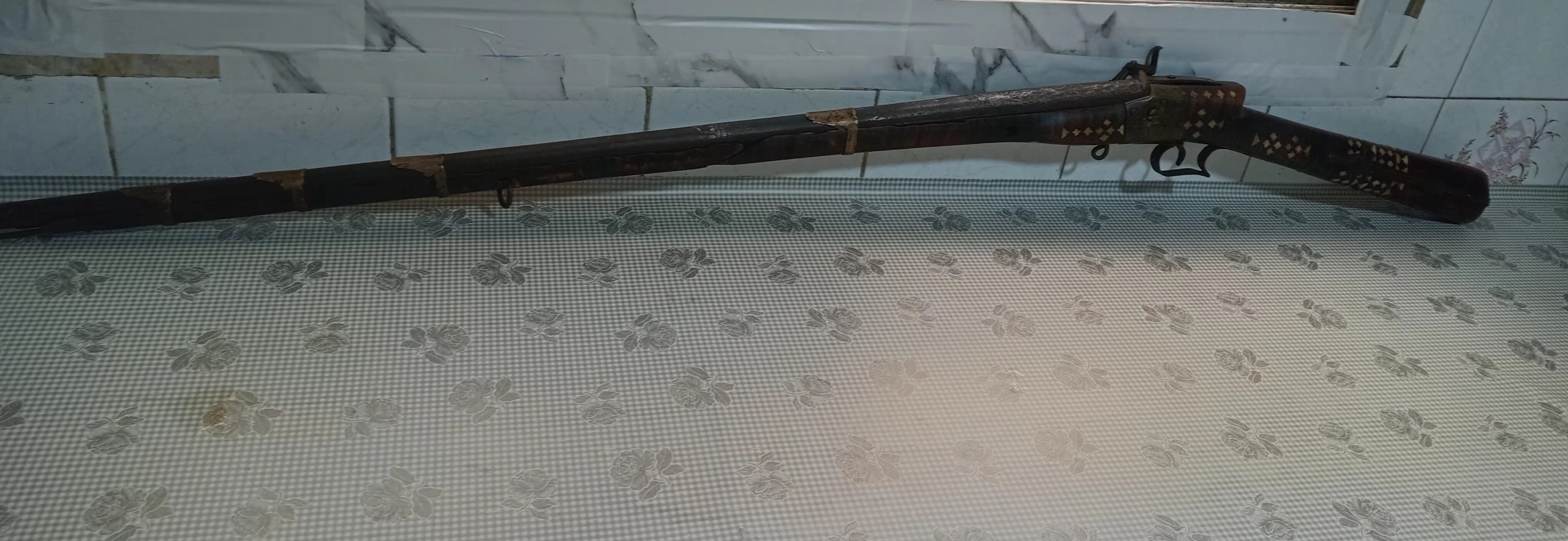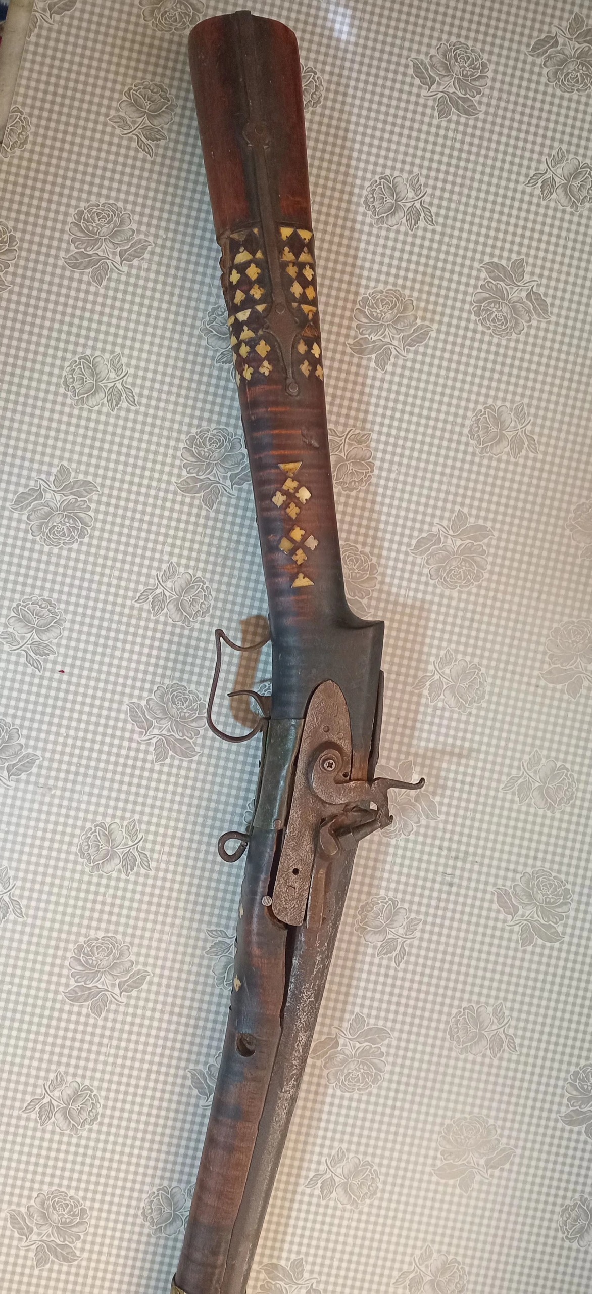 یک عدد تفنگ سر پر قدیمی زمان قاجار سالم بدون ایراد قنداق تزئین شده با اج فیل و دوتکه و بسیار شکیل طول حدود 120 cm
