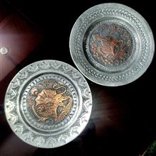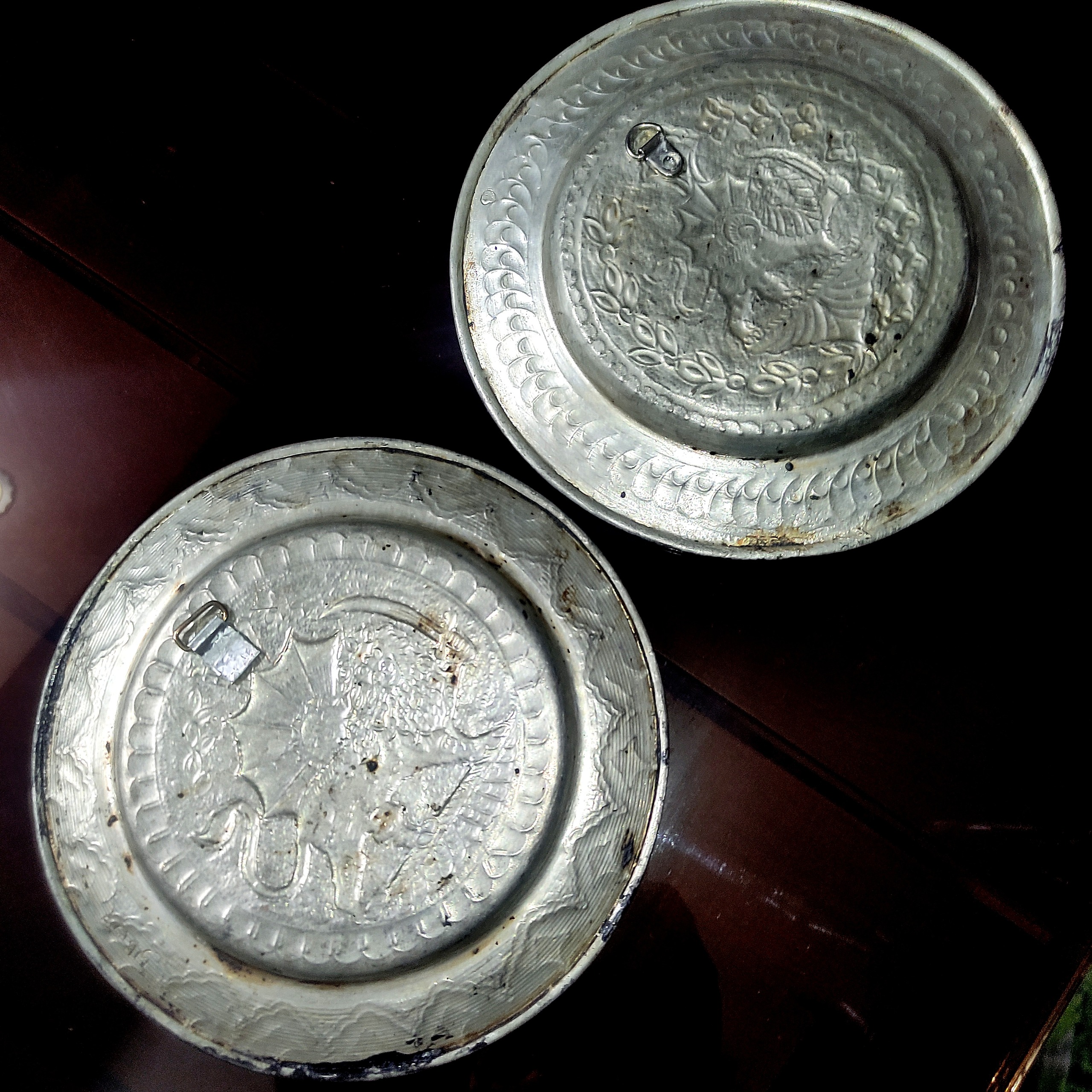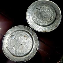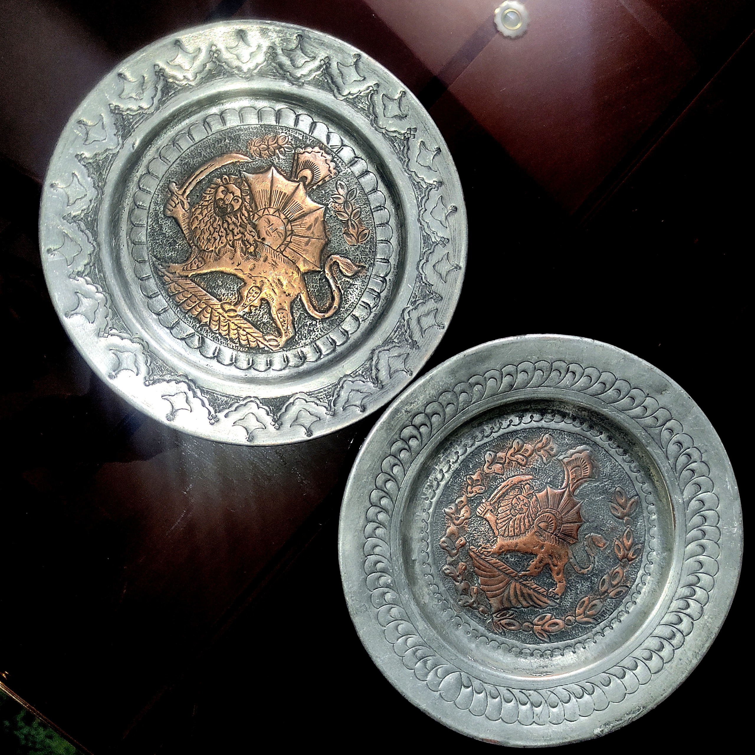 دو بشقاب و دیوارکوب مس قلم پهلوی سایز 19