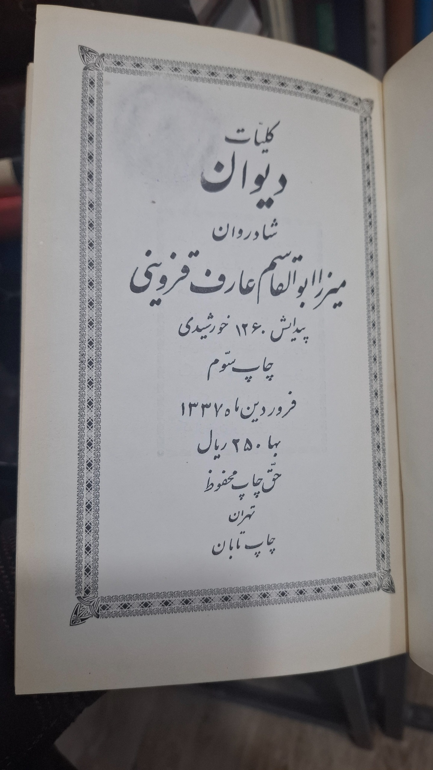 دیوان عارف قزوینی چاپ تابان