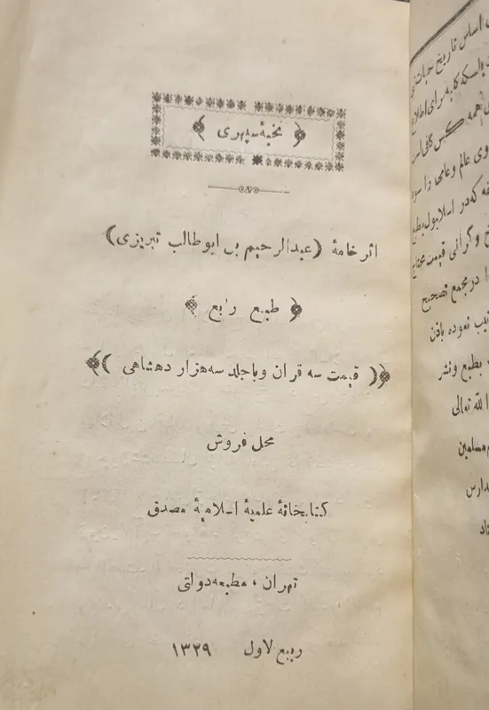 - جلد سخت؛ 200 ص؛ سنه 1329 ه ق