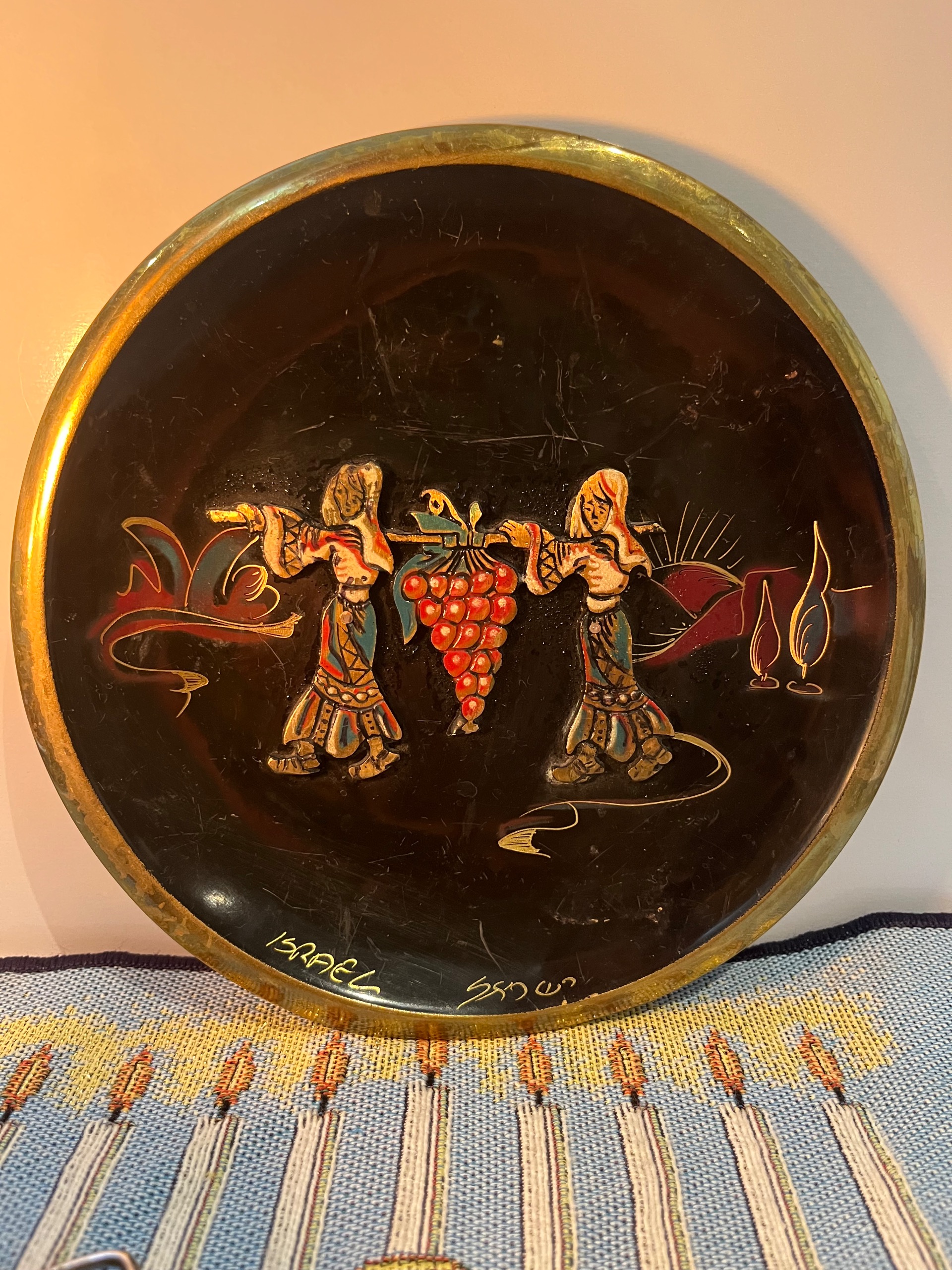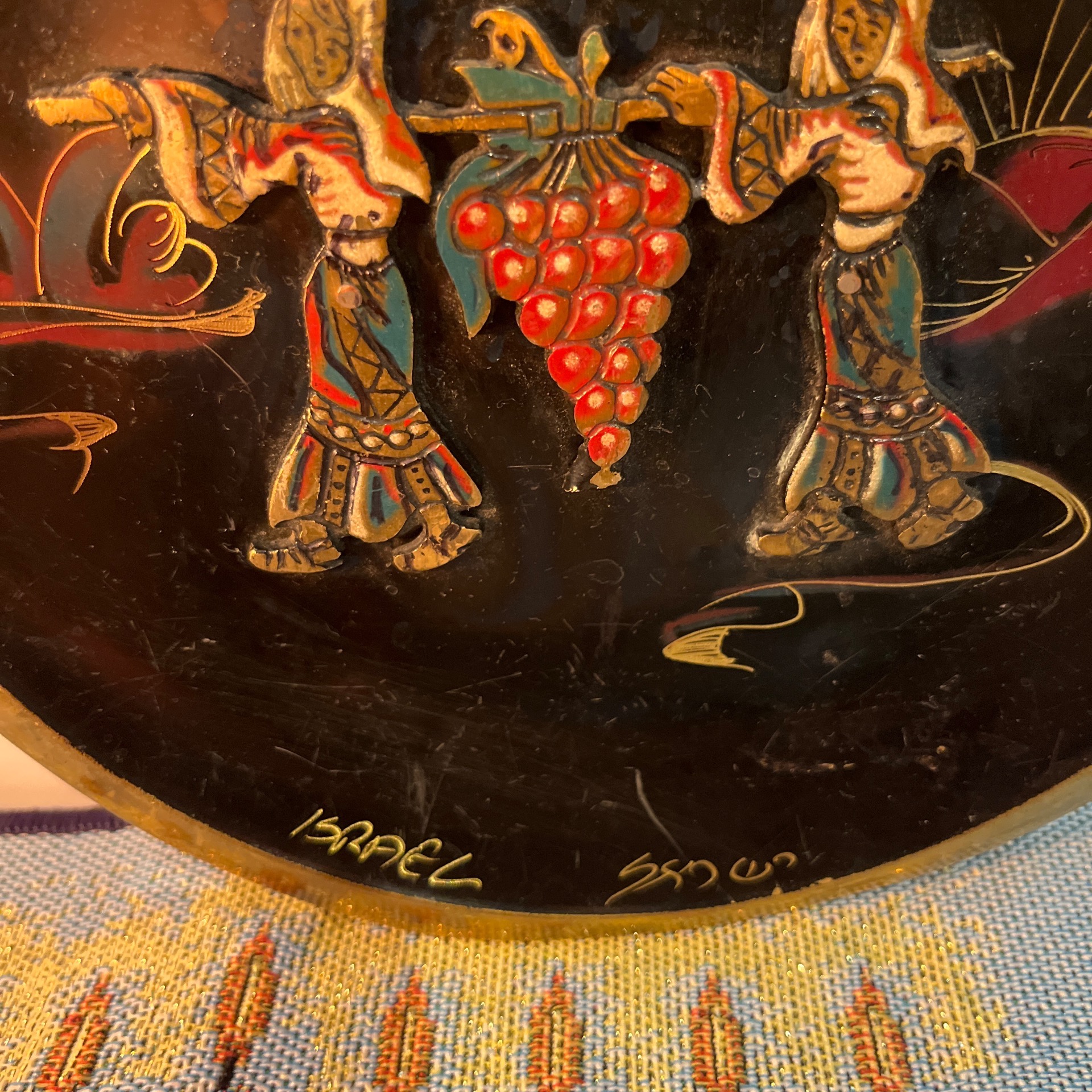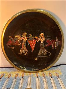 دیوارکوب قدیمی عبری با طرح برجسته کار دست و نقاشی با قطر کار 19 سانتی متر.