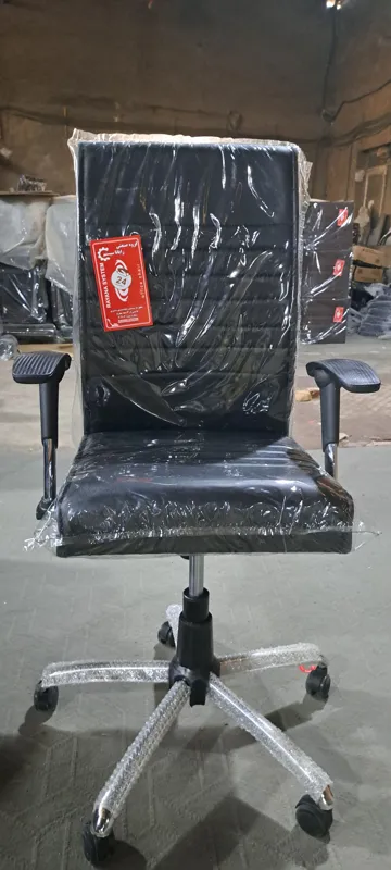 کف و پشت فوم سرد چرم درجه یک قابلیت تنظیم ارتفاع و تکیه گاه چرخ ژله ای پایه 33 آبکاری شده گارانتی کتبی دوساله