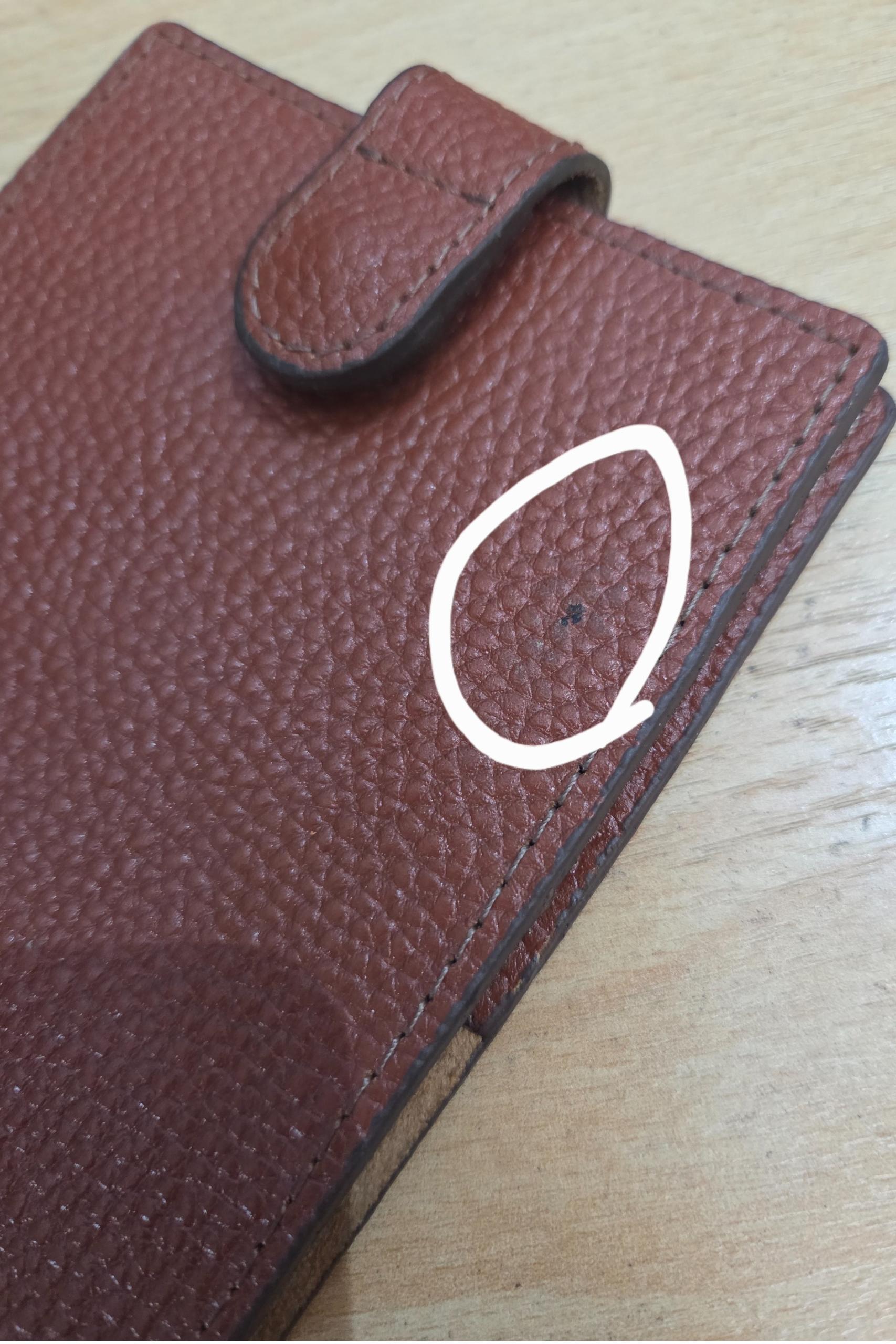 این کیف دسته چک همانطور که در عکس 2 مشخص است دارای لکه رنگ روی چرم هست و باعث عدم تایید در تیم کنترل کیفیت مجموعه تولیدی ما شده است.