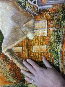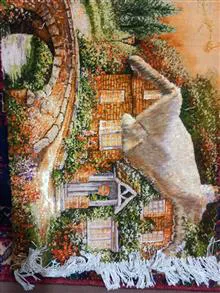 تابلو فرش دستباف ابریشمی طرح منظره برجسته سایز 65×130 بسیار زیبا در حد نو