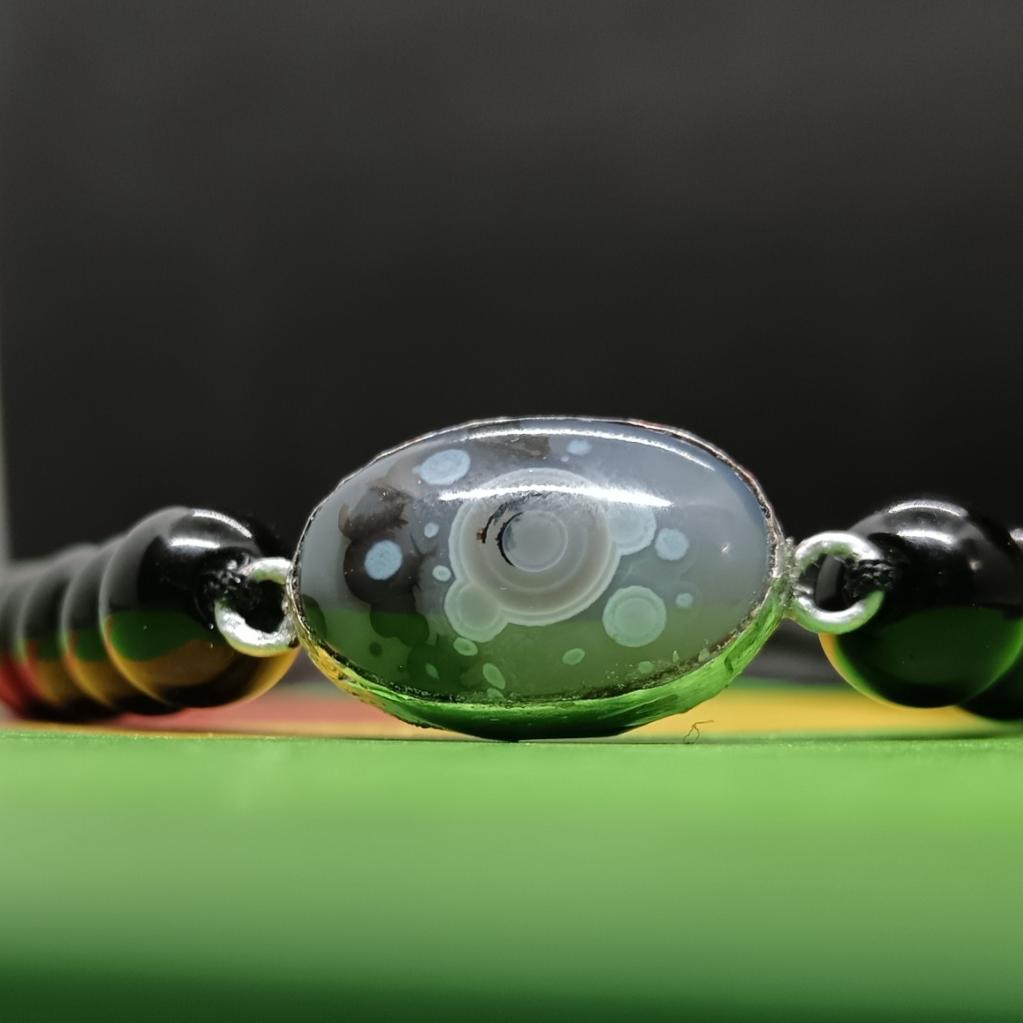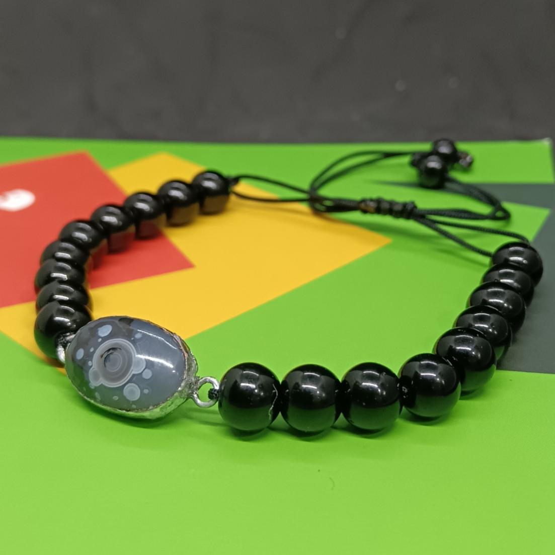 دستبند مهره بافت مزین به سنگ عقیق باباقوری چشم نظر طبیعی، همراهی عالی برای محافظت از چشم زخم و نظر سنگ کاملن طبیعی قاب سنگ دست ساز طرح قدیمی بند کشویی قابل تنظیم سایز کاری کلکسیونی قابل استفاده روزمره محکم و بادوام