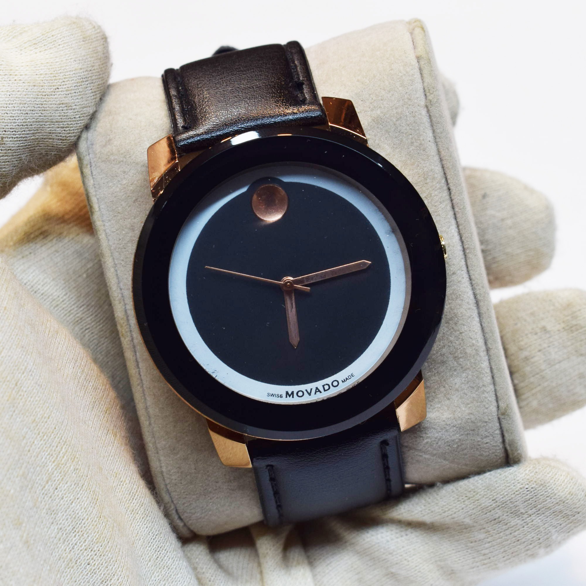 حراجی ساعت Movado بند چرمی مشکی