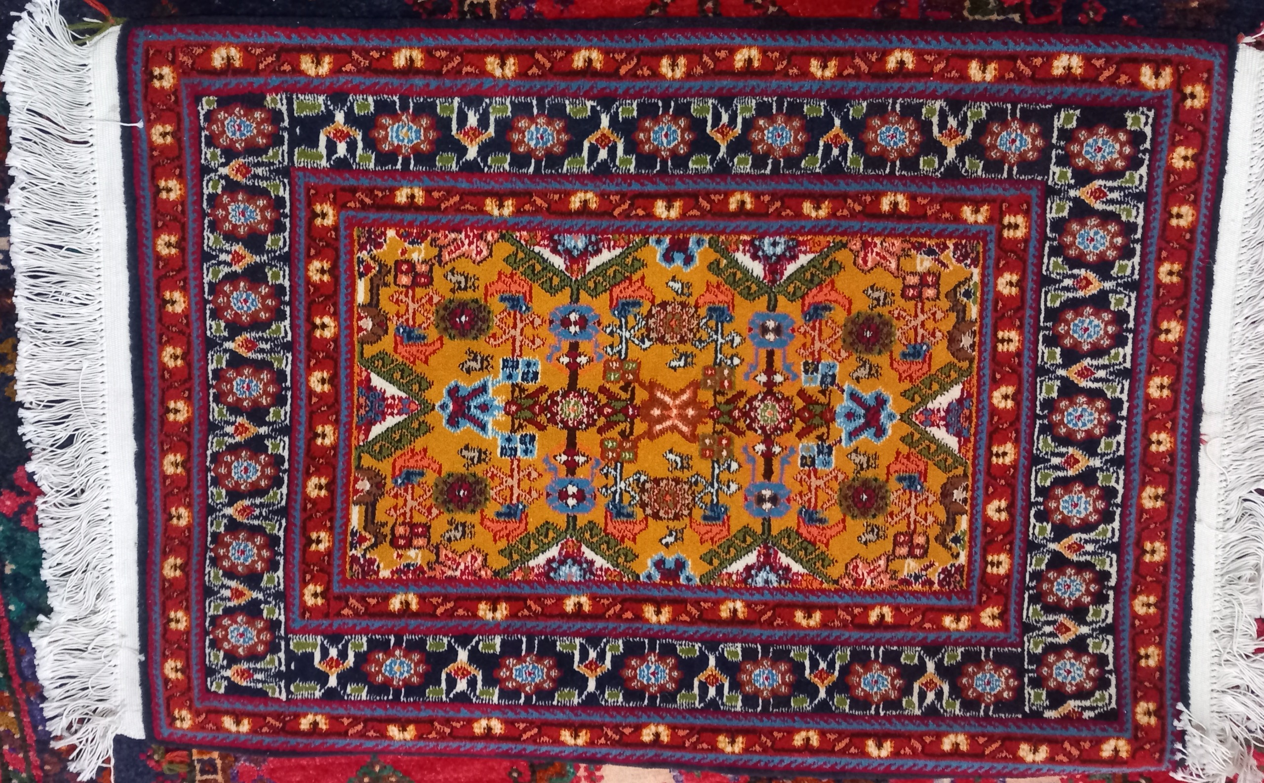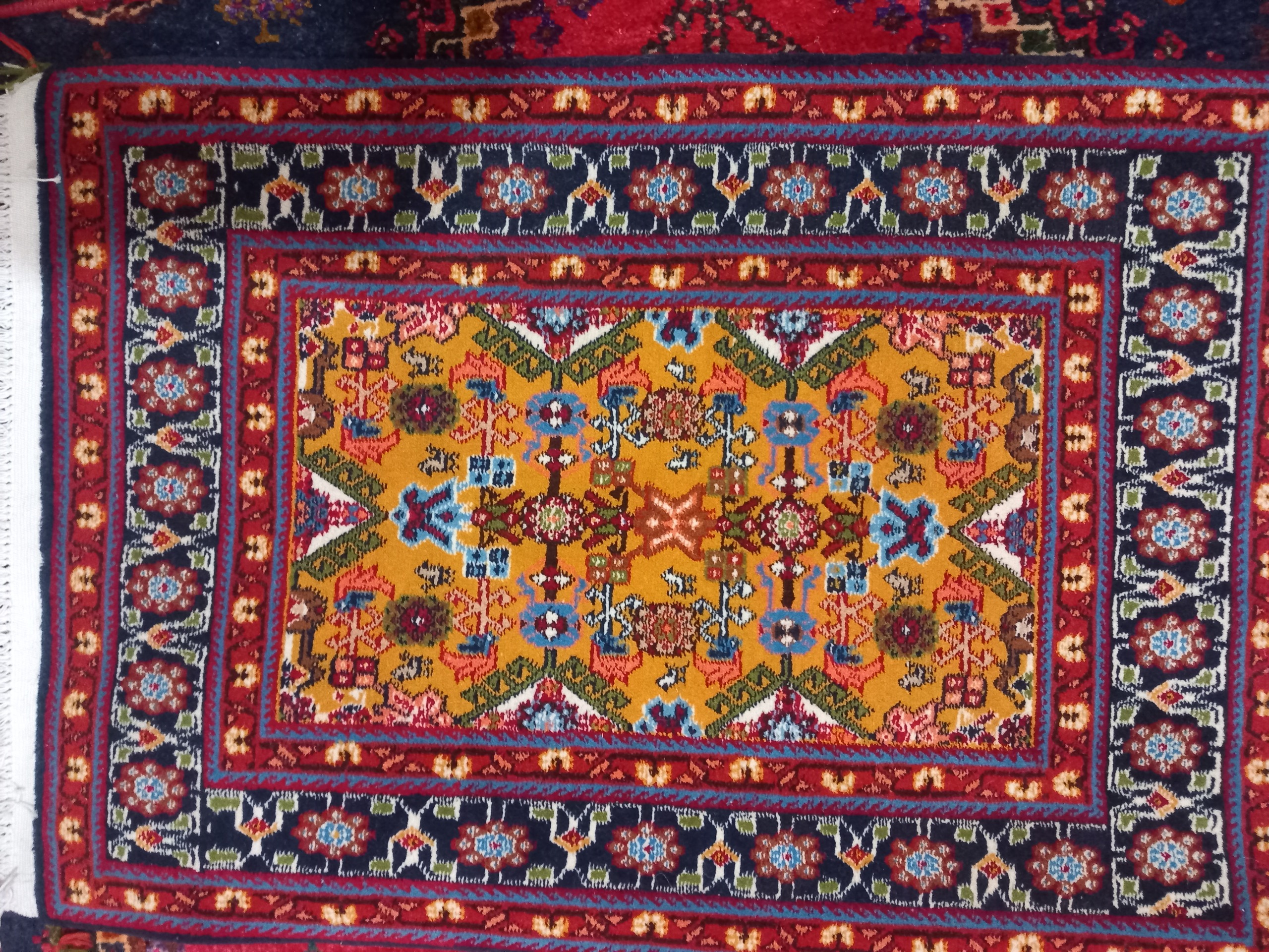 قالیچه دستباف پشمی قدیمی ترکی فیروزاباد فارس نو بدون استفاده سایز60×90