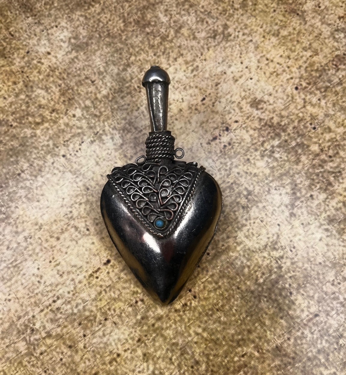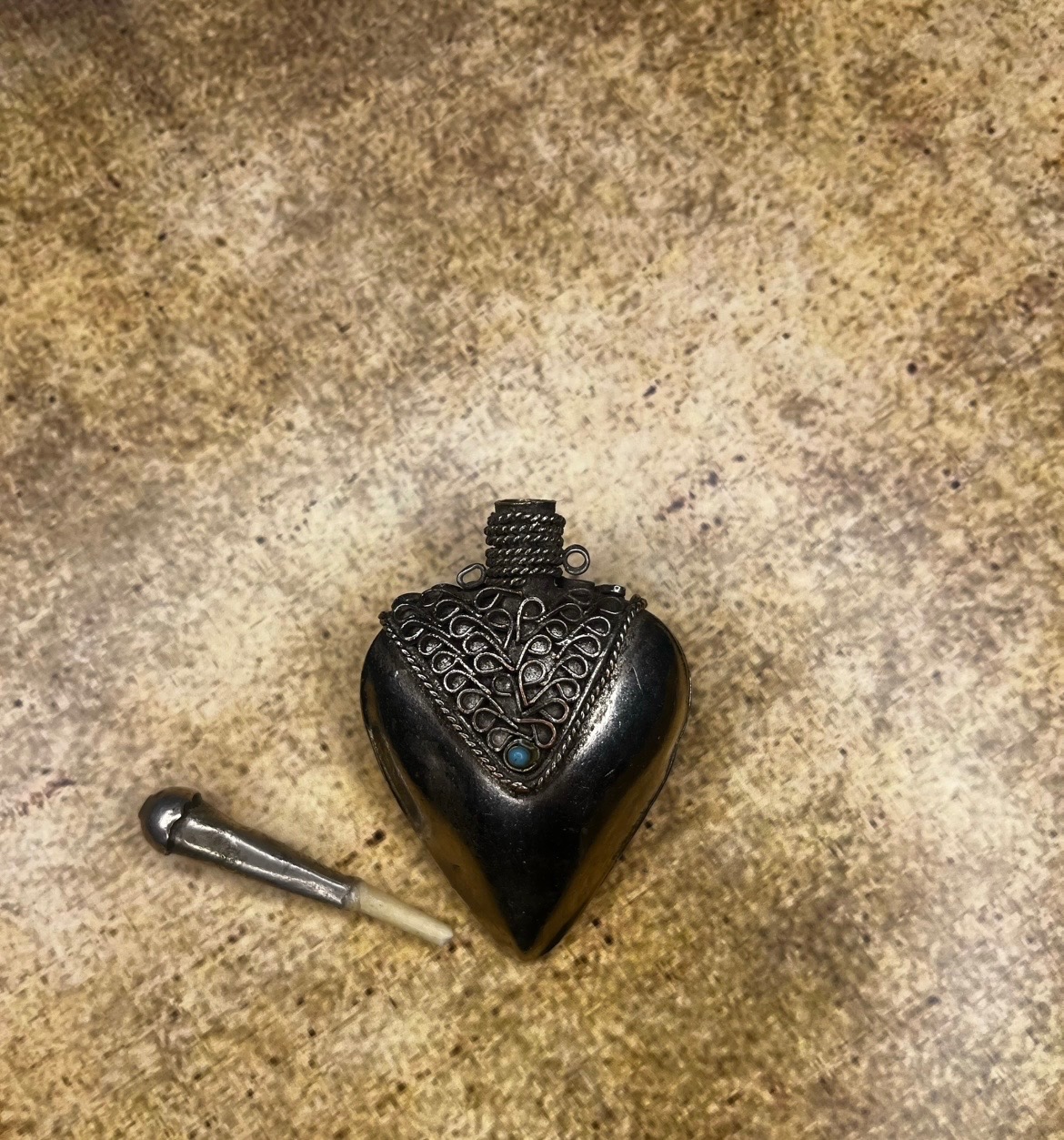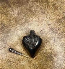 زهردان قدیمی استیل دارای حکاکی و تزئینات ظریف روی بدنه جنس پایه درپوش استخوان