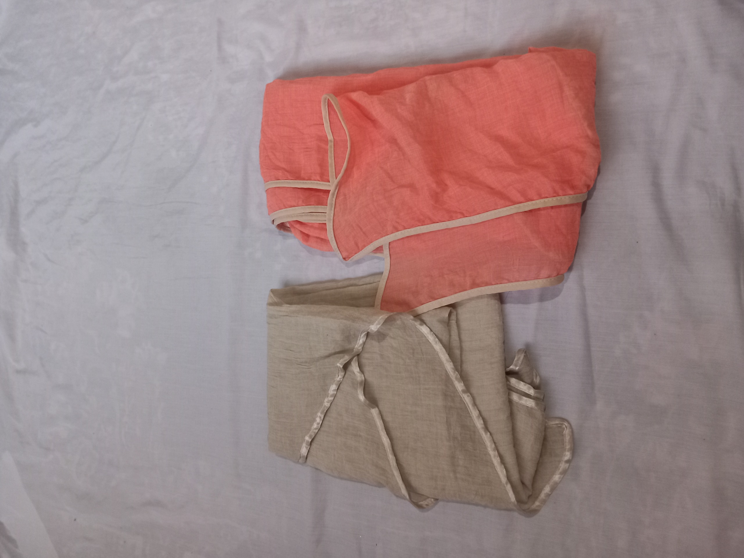 دو عدد شال هرکدام یکبار استفاده شده و طرح حاشیه داره و نخی جنس عالی.  پهنا دارد   شال بعدی اشانتیون هست.   قیمت کلا 280تومن ارسال رایگان