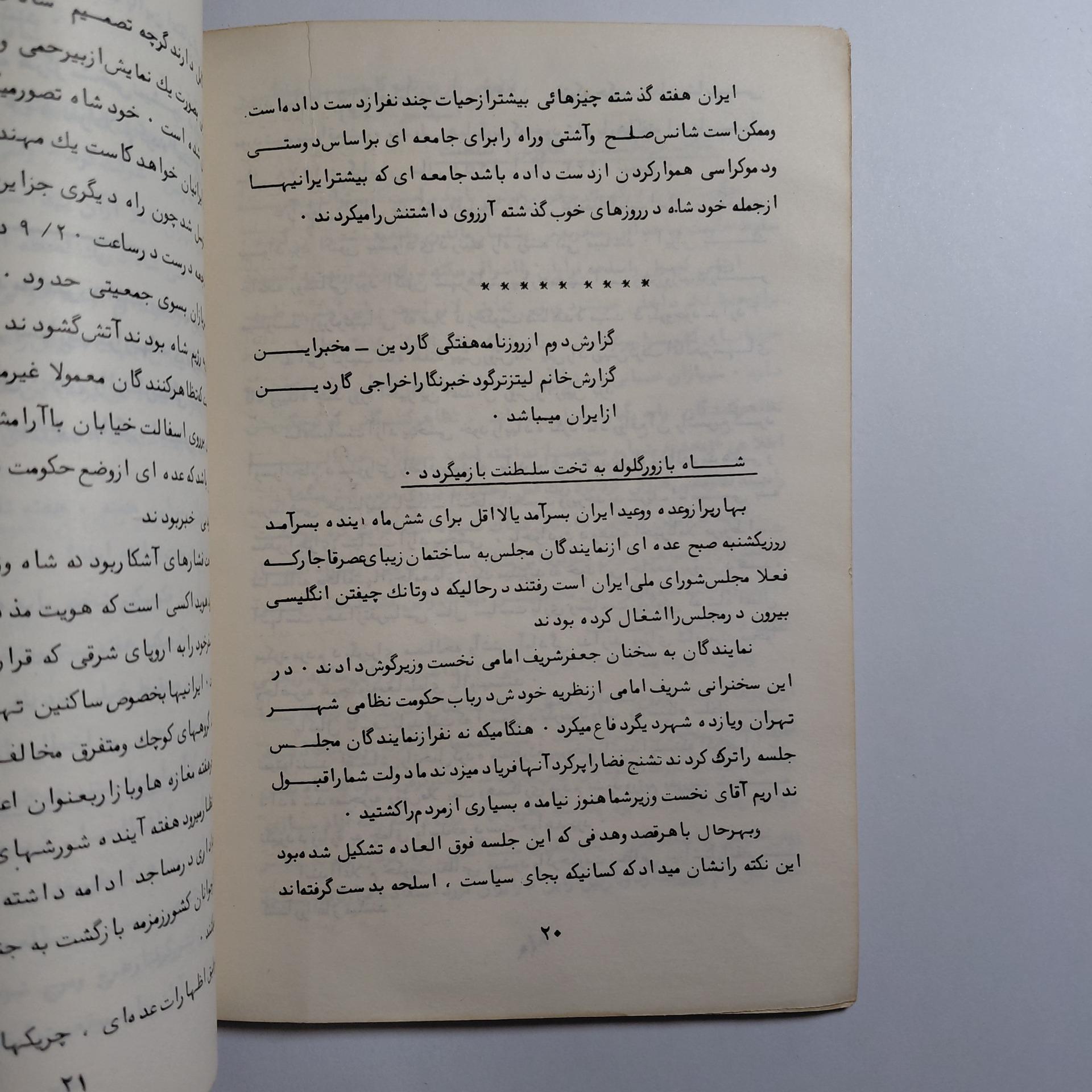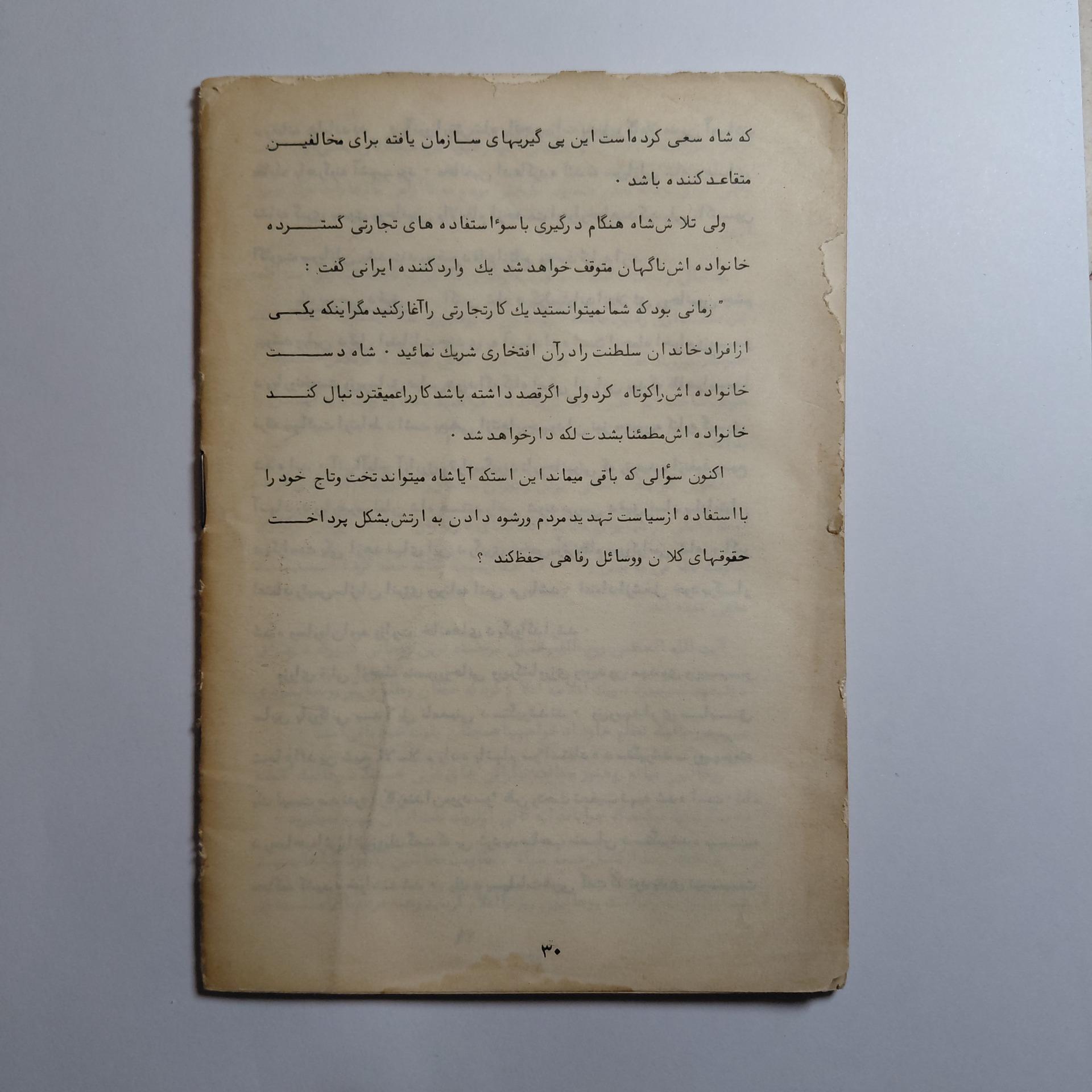 یک کتابچه 30 صفحه ای در مورد واقعه جمعه سیاه یا همان 17 شهریور 1357 که بر اساس گزارش خبرگزاری هایی مانند لوموند و نیوزویک تهیه شده است. کتاب فاد جلد است در قطع جیبی، مطابق تصاویر
