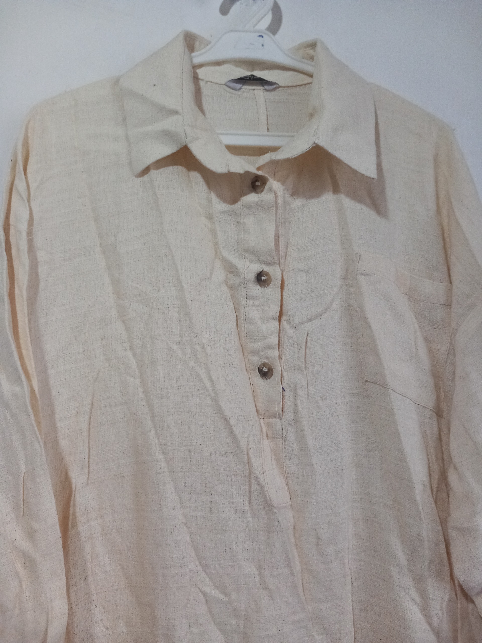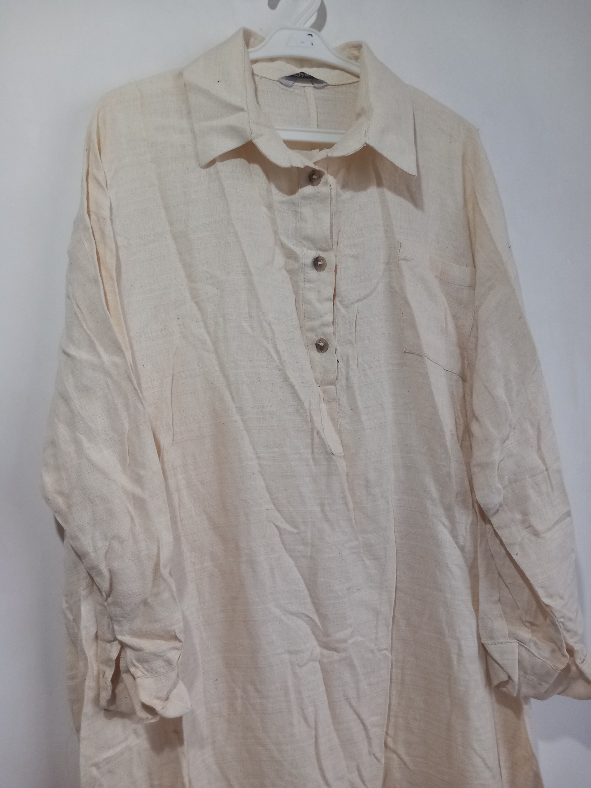 مانتو پیراهنی نو رنگ شیری. قد بلند و مناسب فصل تابستان خنک هست. و بهار. فری سایز هست از 44 تا 50 اوکی هست و پهنا دارد