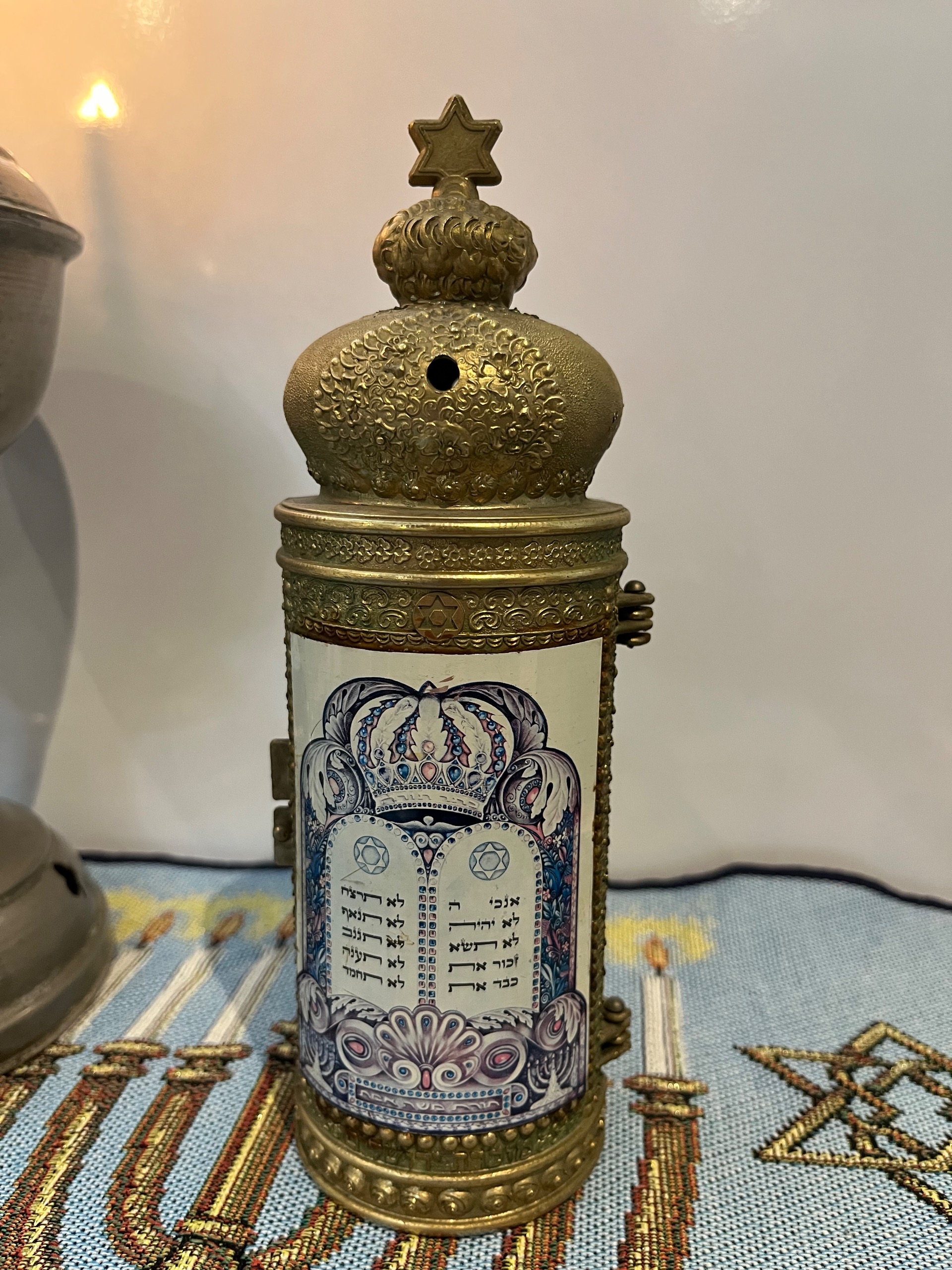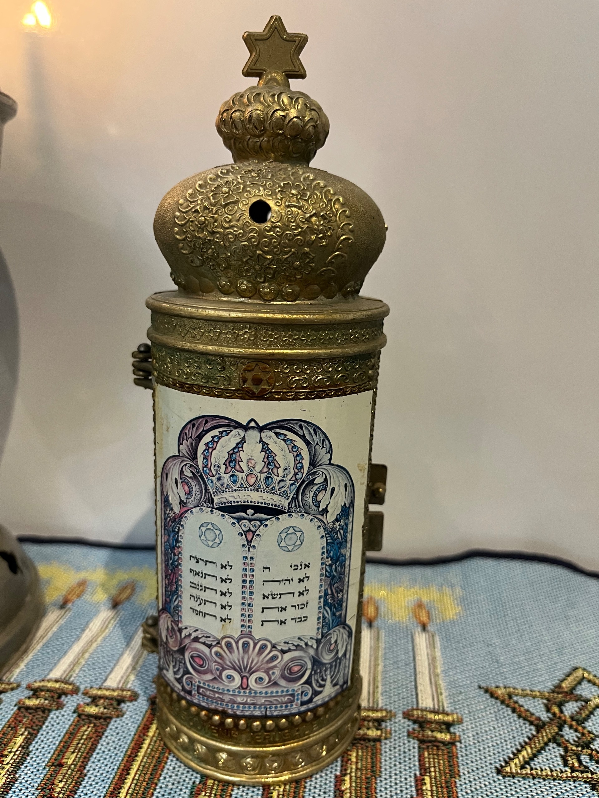 روی بدنه کار ورقه های فلزی طرح دار از ایات همان کتاب هست و بالای کارهم نماد همان کتاب کار شده است و بیشتر نمیشود توضیح داد و داخل عکس ها کاملا مشخص هستند.
