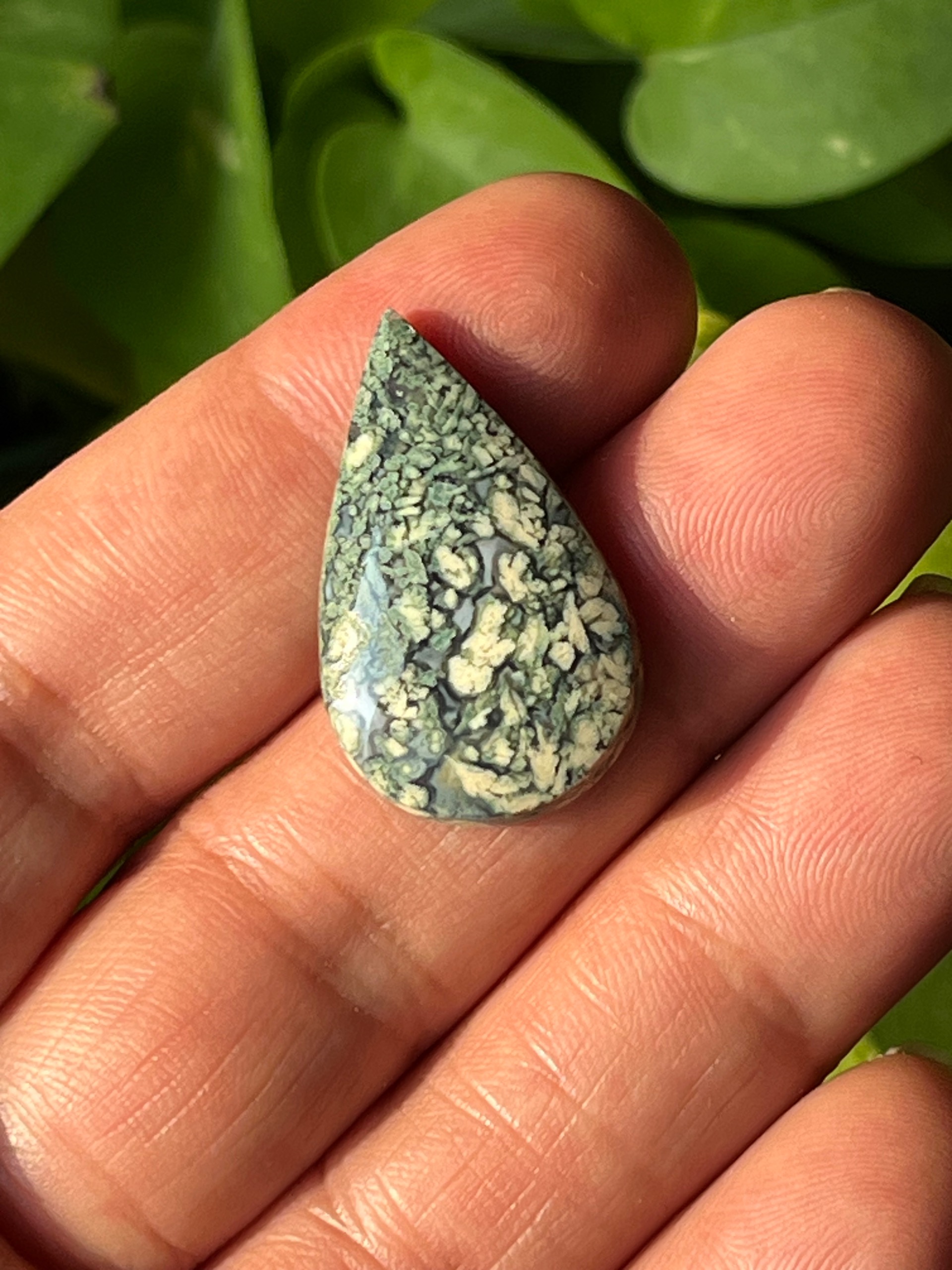 نگین عقیق با تم رنگی بسیار خاص سبز و نقش بی نظیر، از موارد کمیاب، بسیار دیدنی از خراسان جنوبی با ترکیب نقش بسیار زیبا