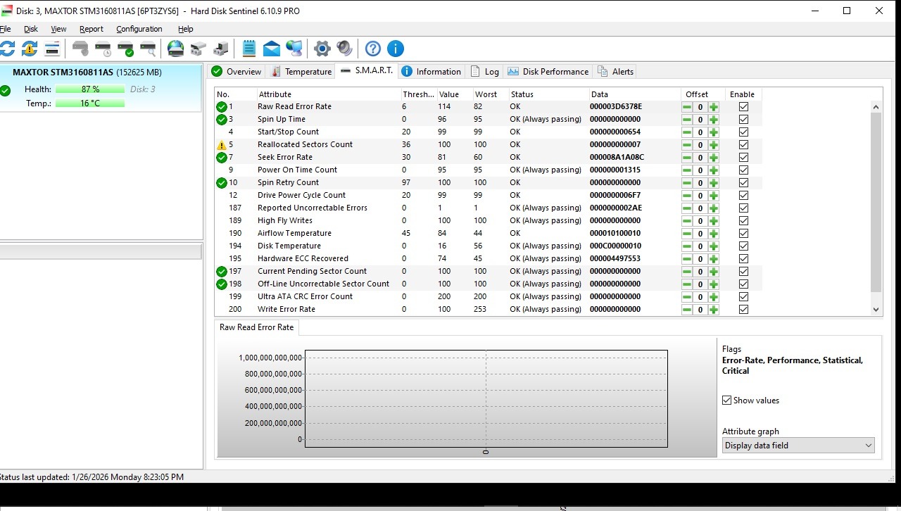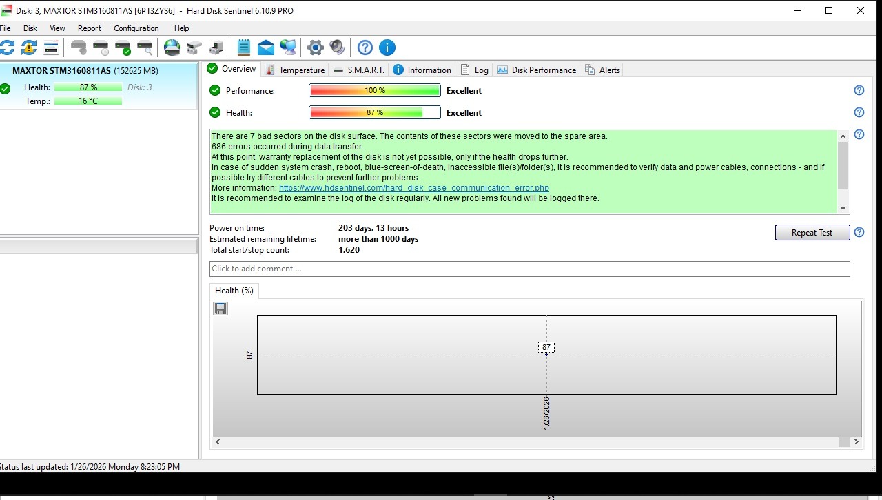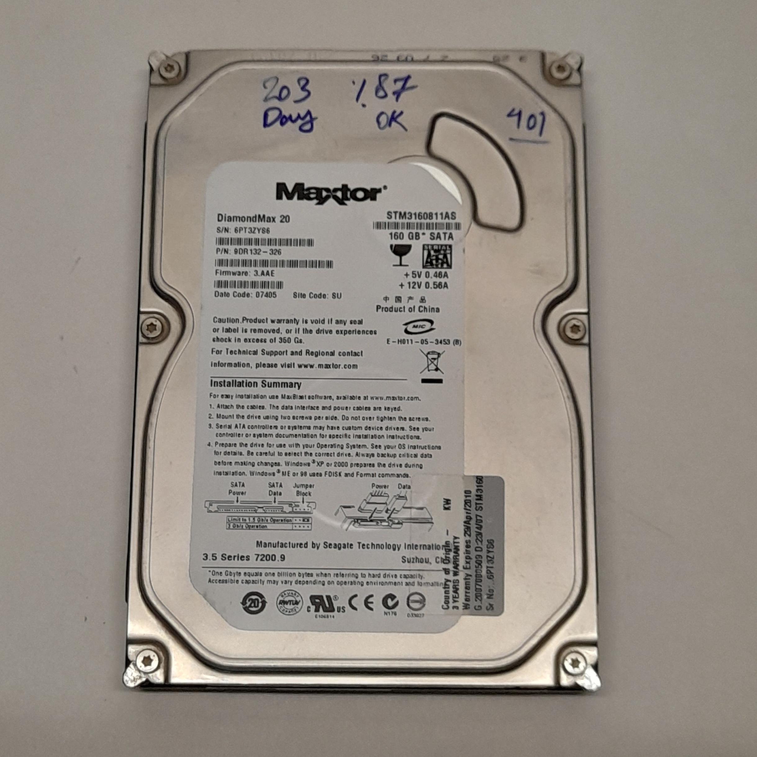 هارد 160 گیگ Maxtor SATA هلث87 کد 401