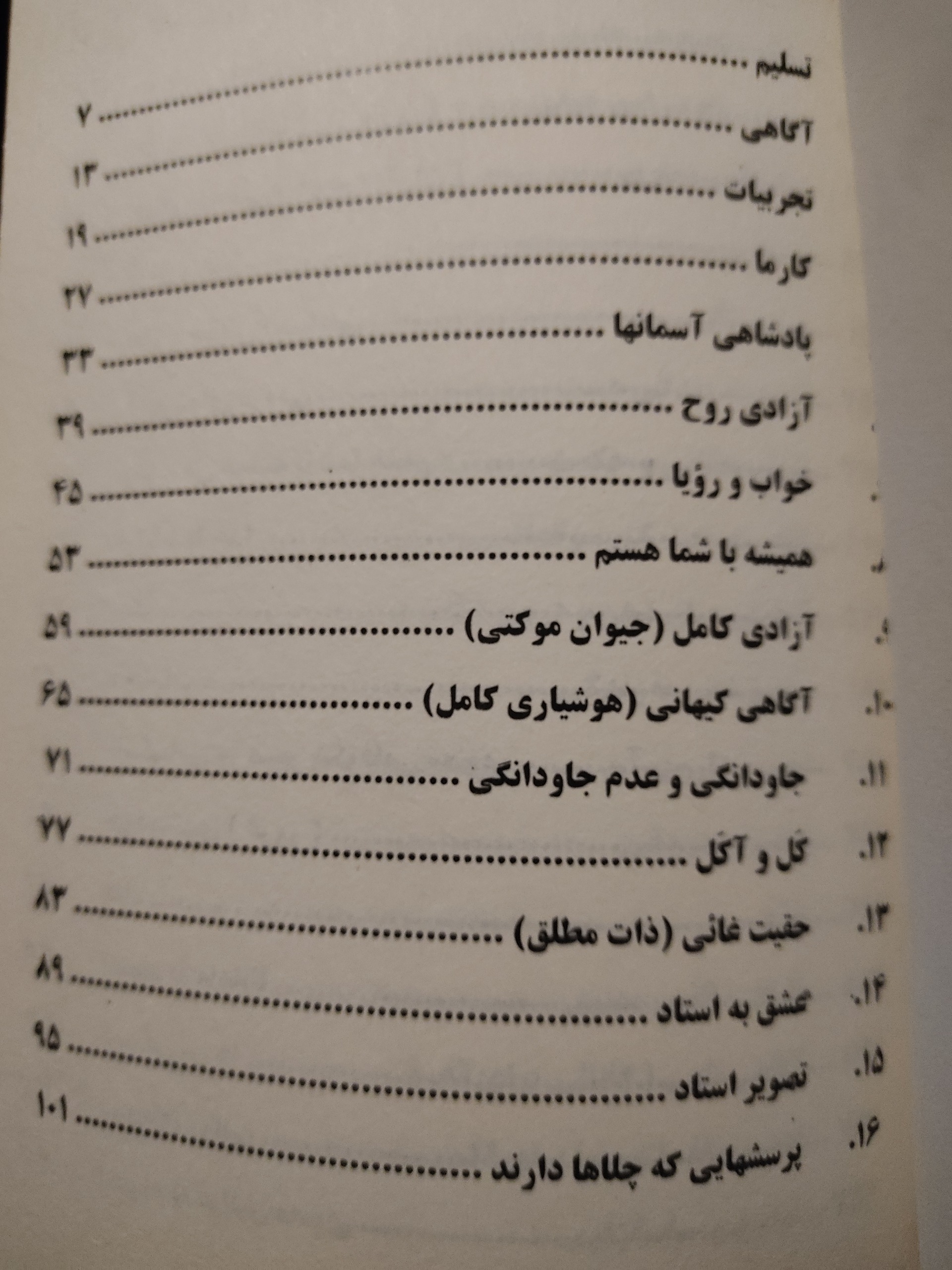 تسلیم، آزادی، طبیعت الهی، آگاهی کیهانی، جاودانگی وعدم جاودانگی، دشمن زندگی، حقیقت غایی، سفر روح و شکوفایی معنوی موضوعات عمده ی این کتاب هستند.