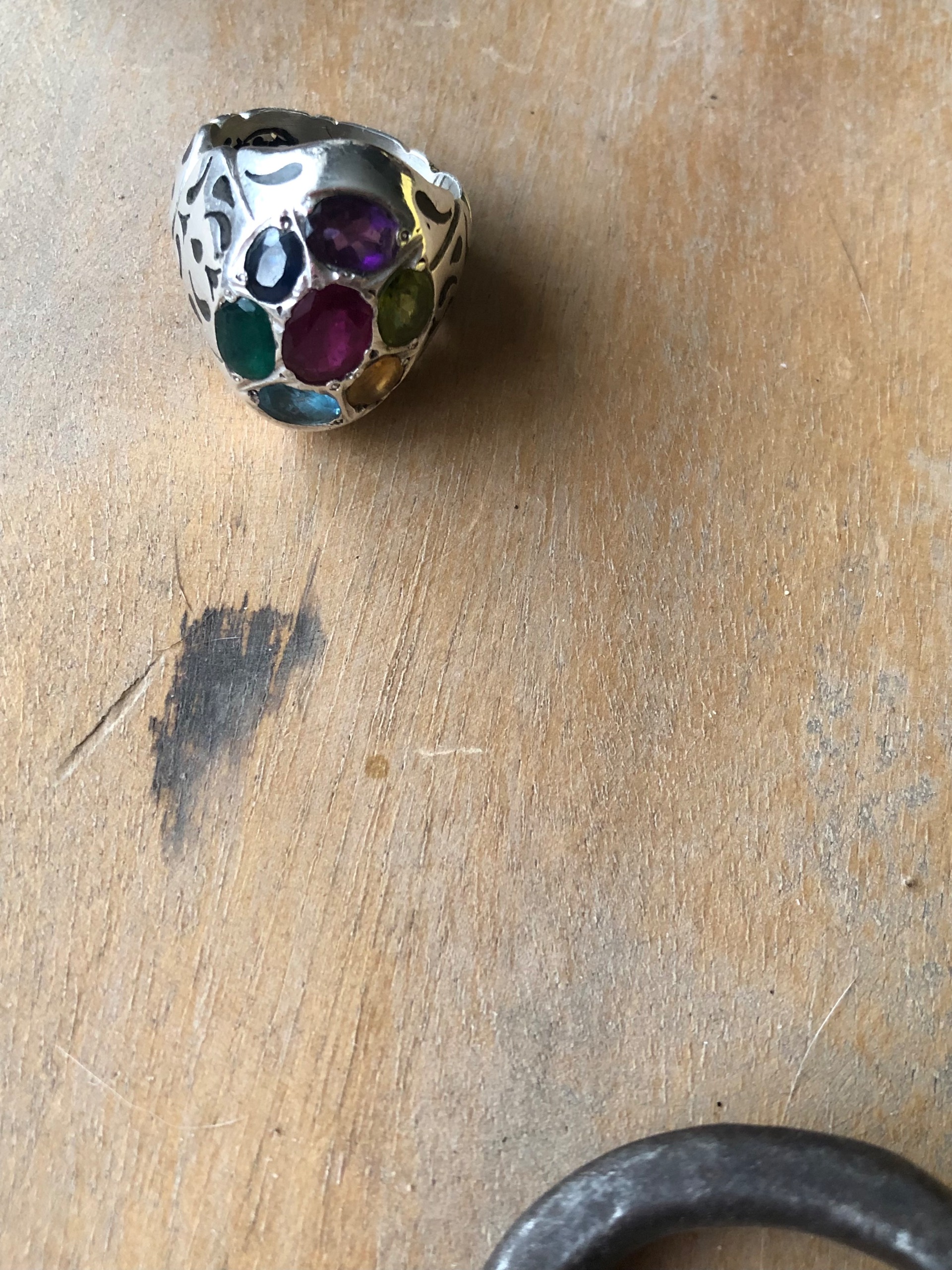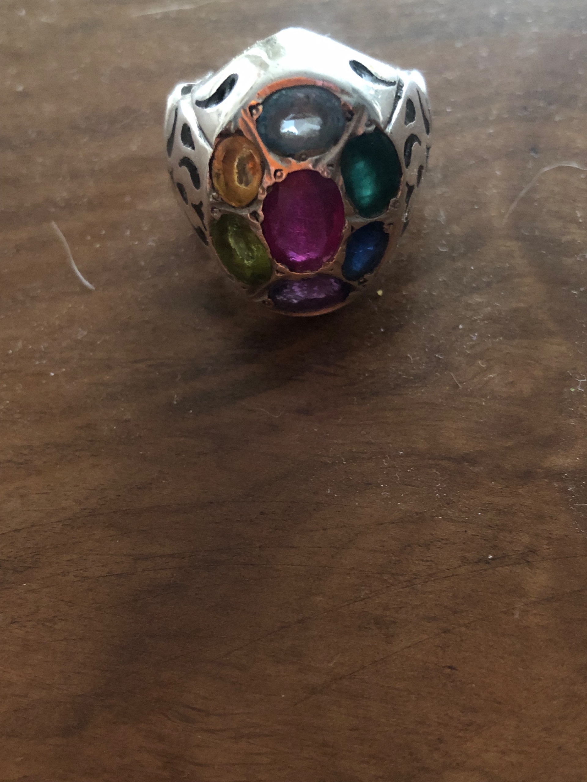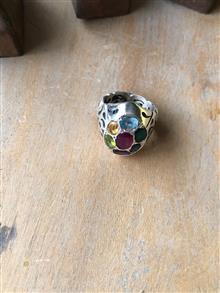 انگشت هفت جواهر دست ساز نقرهء قدیمی.