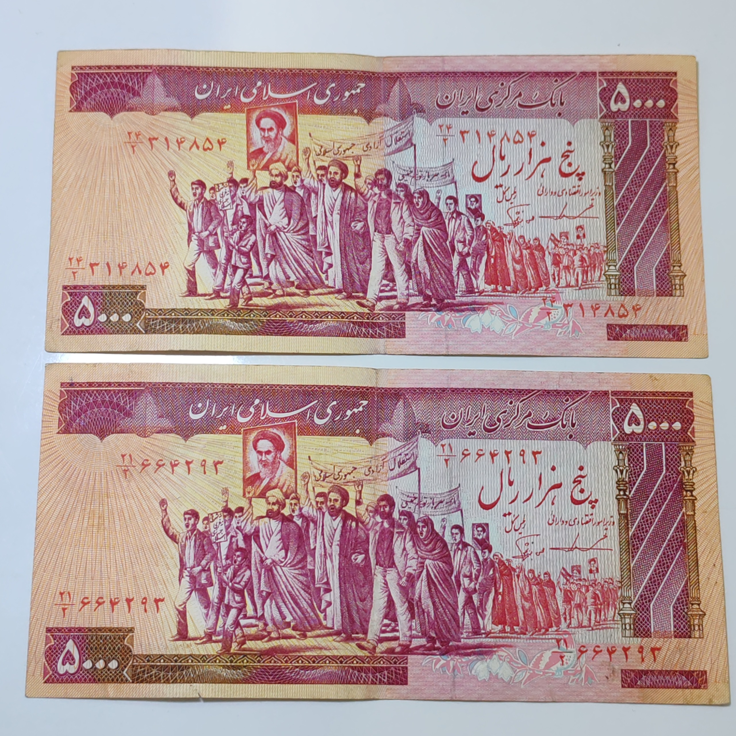 2برگ اسکناس 5000ریالی تظاهراتی امضا نایاب ایروانی نوربخش