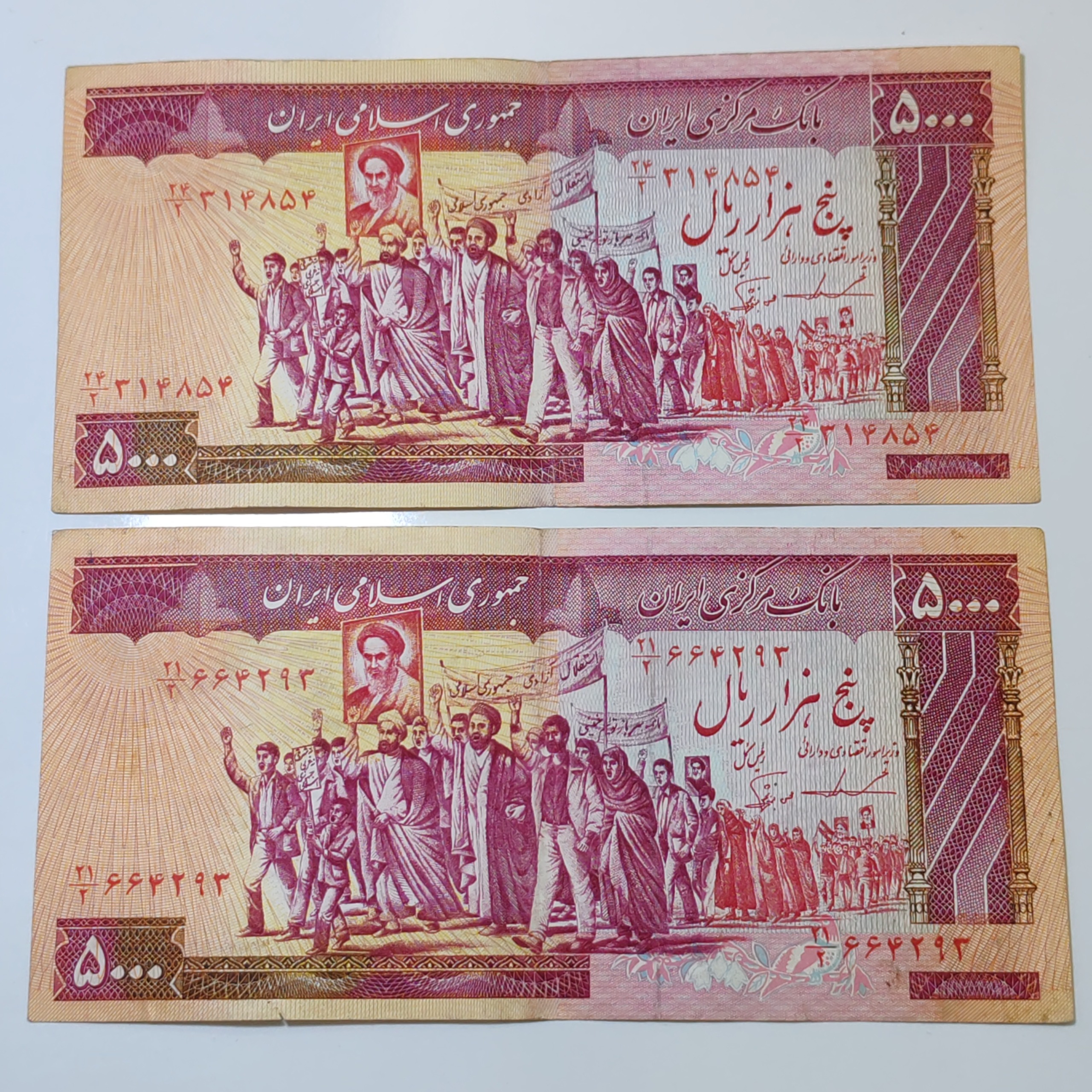 2برگ اسکناس 5000ریالی تظاهراتی ایروانی نوربخش