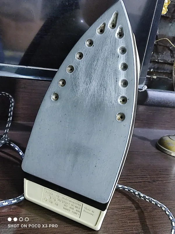 یک عدد اتوی قدیمی المانی برند مشهورaeg مطابق تصویر سالم و تمیز و بکر اصل اصل ژرمن این اتو قدیمی جزع اولینهای اتو بخار که مخزنش داخل خود اتو قرارداره اما متاسفانه بخارش کار نمیکنه نمیدونم چرا