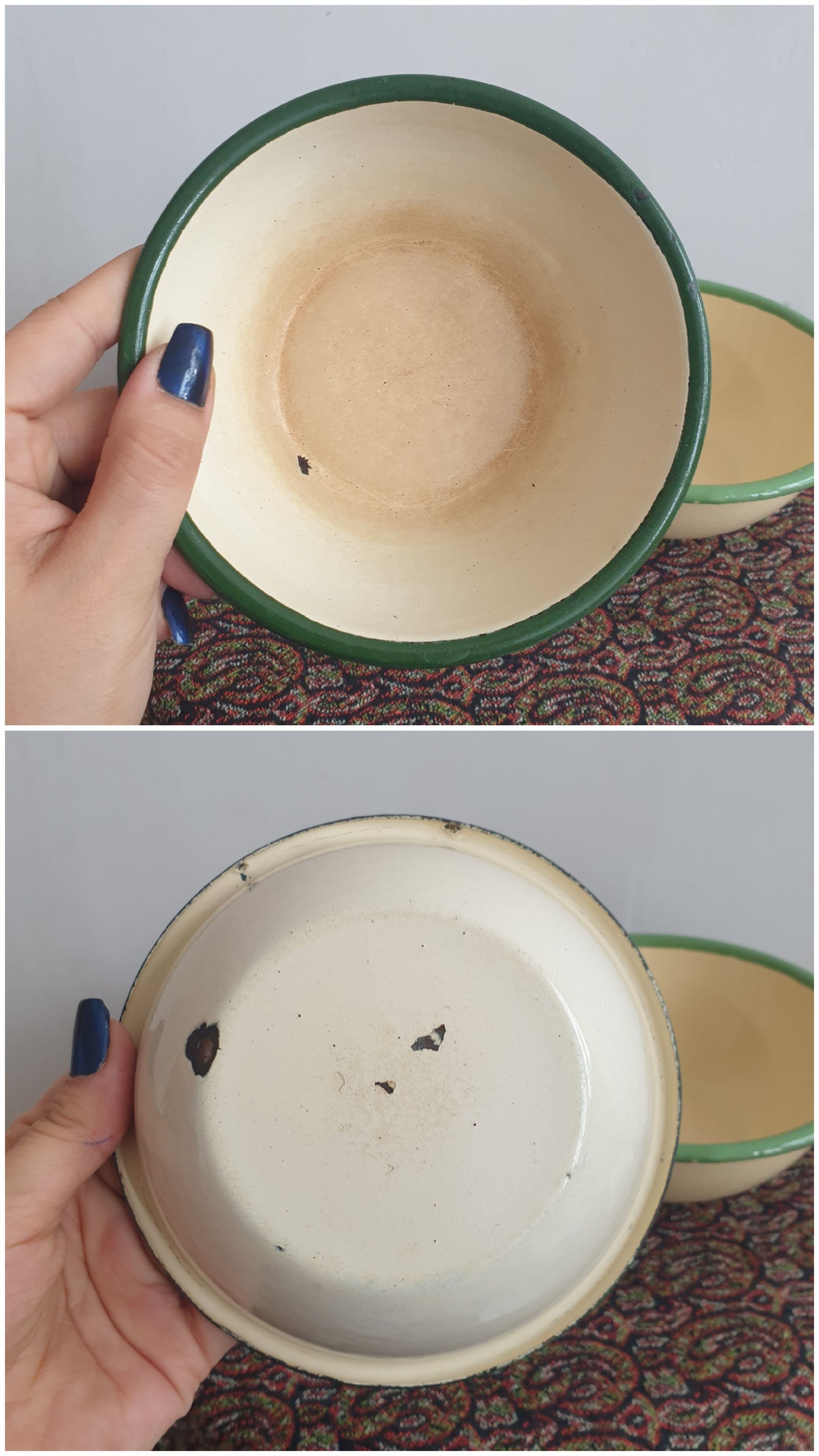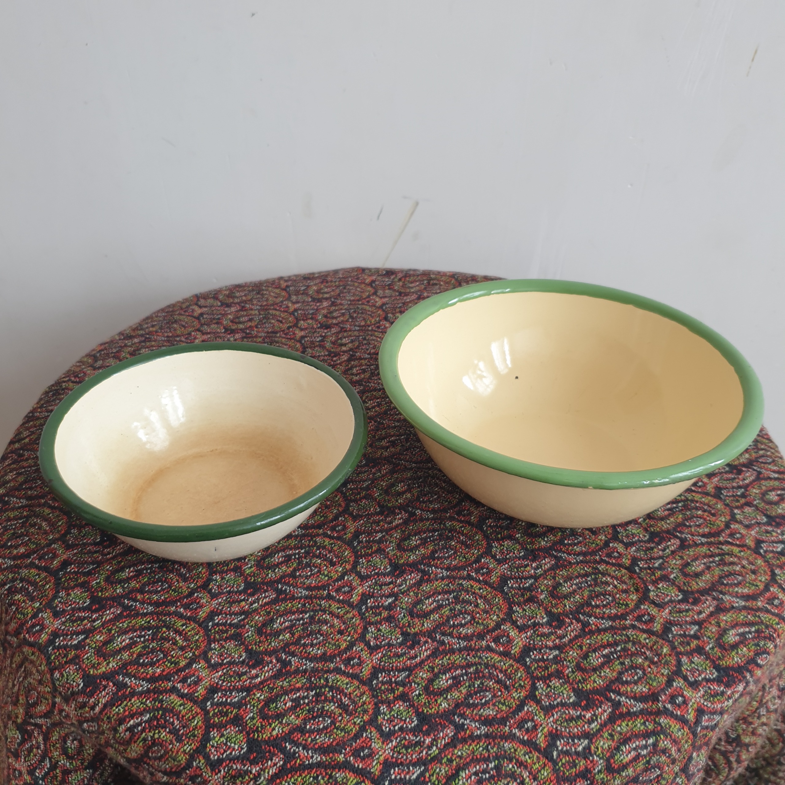 دو عدد کاسه قدیمی لعابی جینگو در دو سایز مختلف