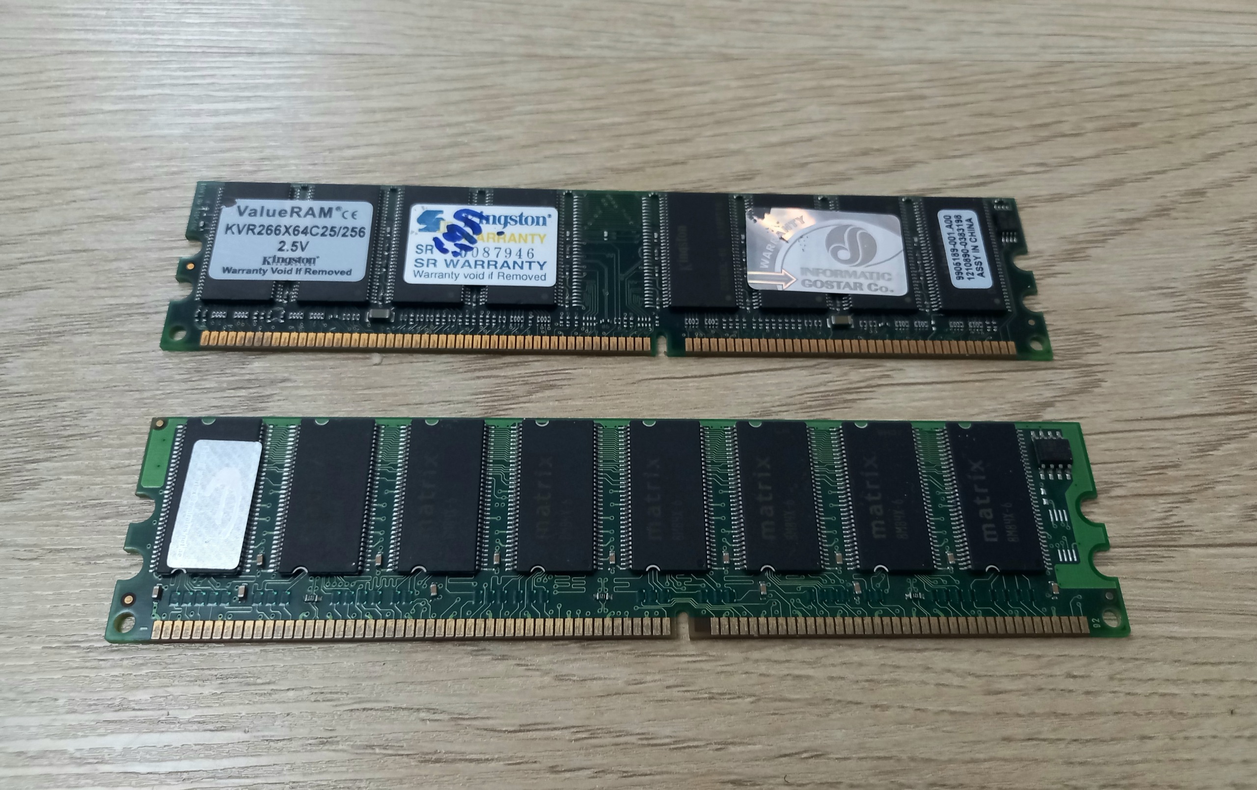 دو عدد رم کامپیوتر kingstone و matrix فروش با هم