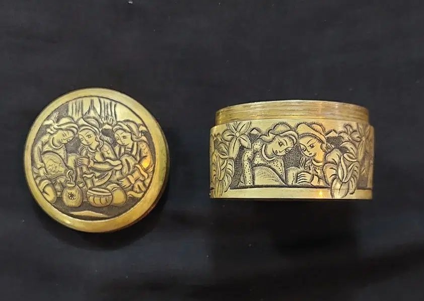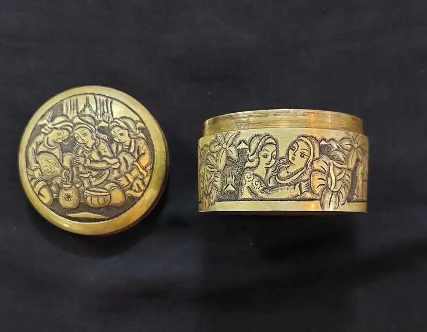 حبدان برنجی قلم کاری شده امضا دار