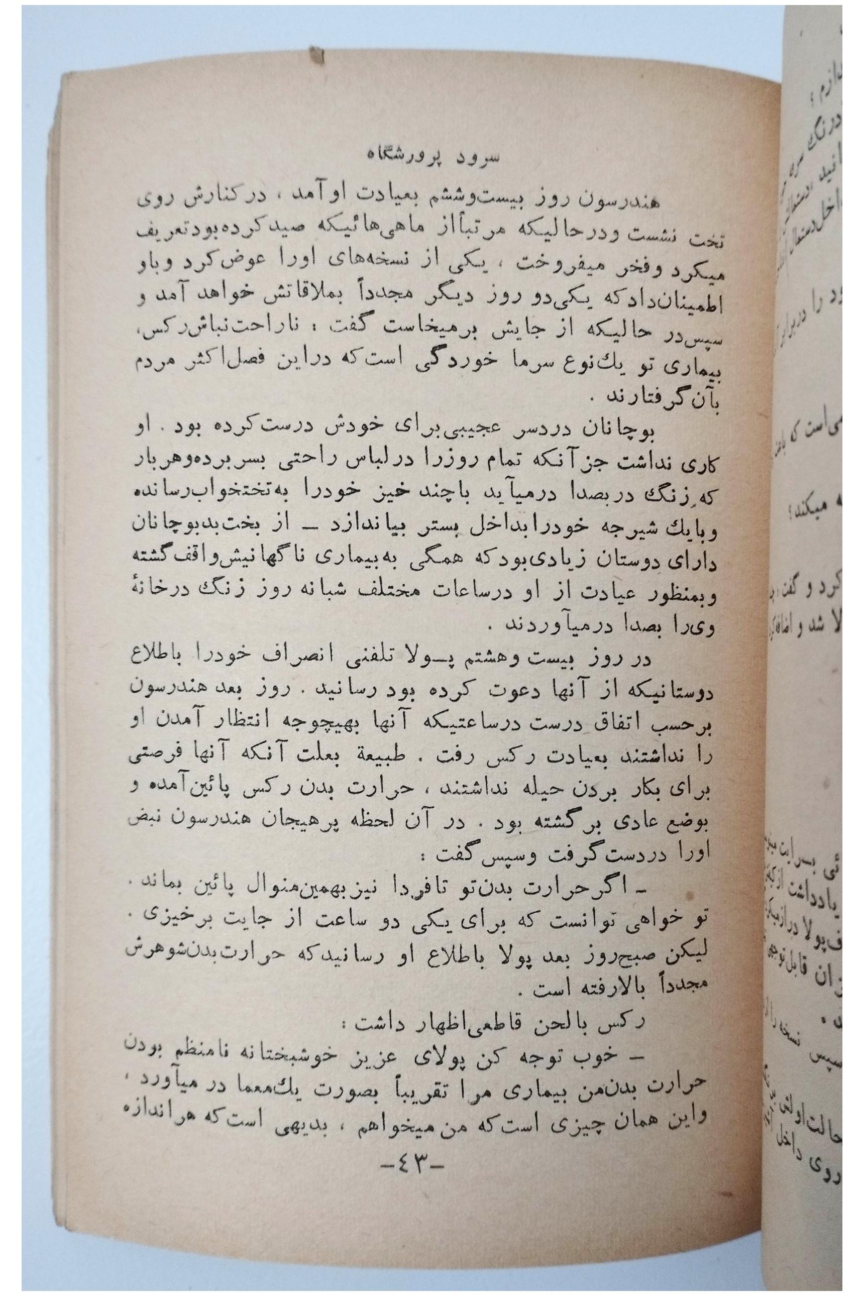 بدلیل قدمت چاپ برخی صفحات و لبه های صفحات دارای لکه و زدگی و تاخوردگی می باشند.