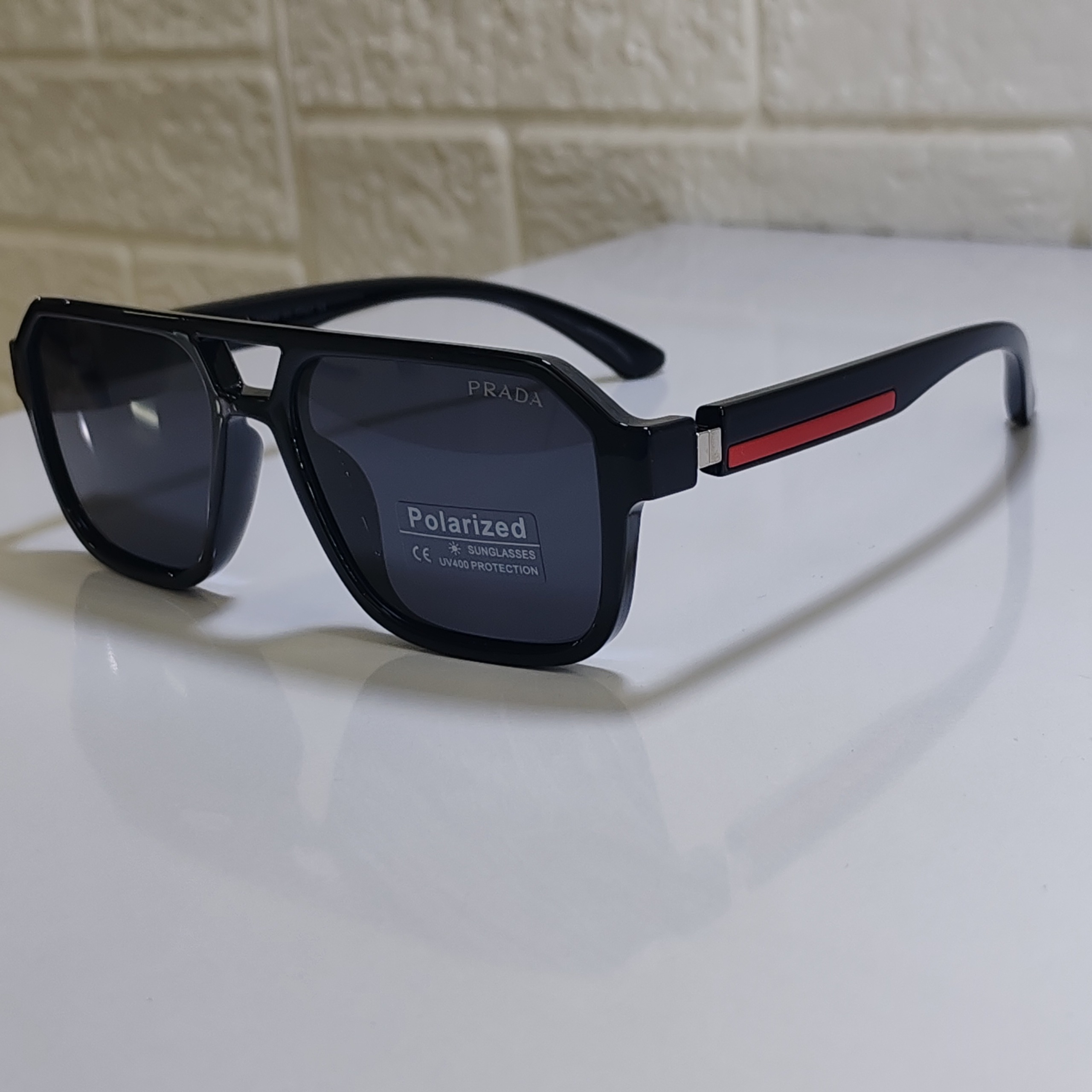 لنز قدرتمند در برابر اشعه های مضر جهت استفاده عادی و رانندگی و کوهنوردی و ورزش و بادید تمام مشکی. برند معتبر پرادا ایتالیا .