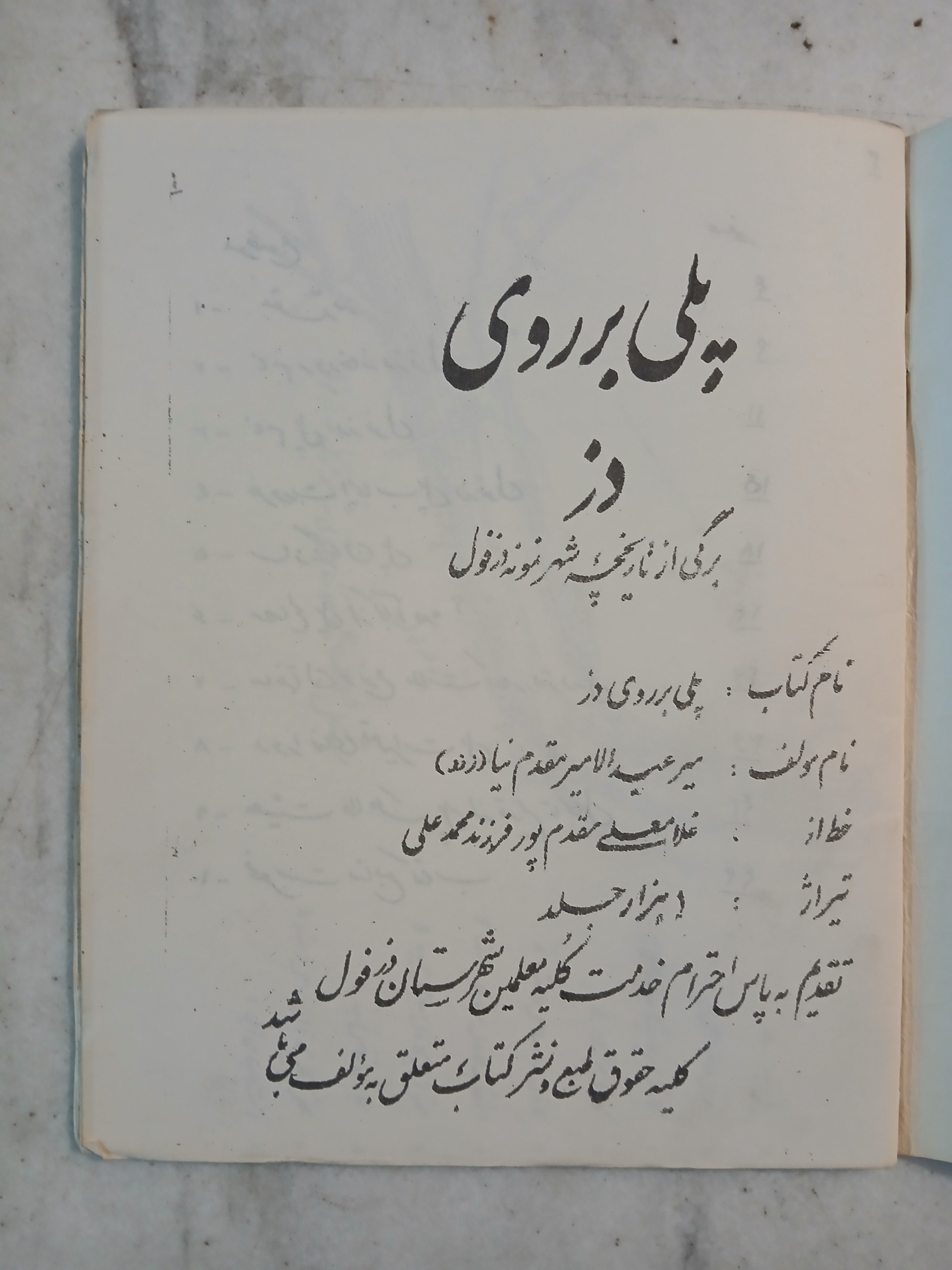 این کتاب دفترچه ای در مورد تاریخ و جغرافیای دزفول هست
