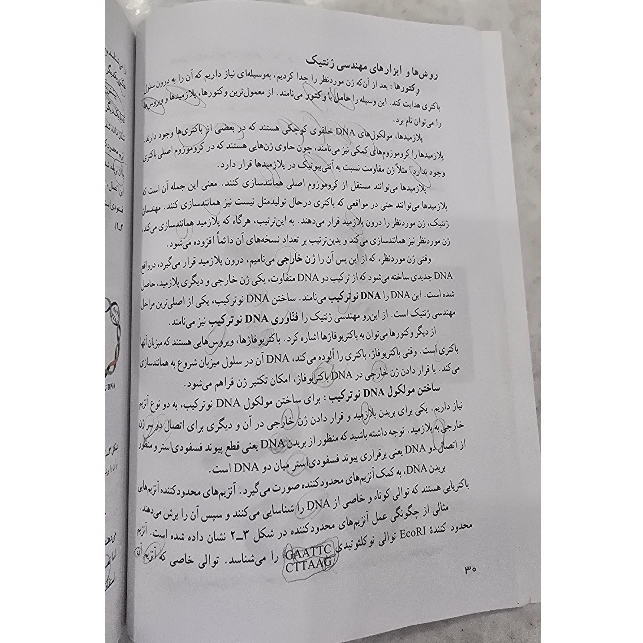 بعضی صفحات کتاب طبق تصویر نوشته با مداد دارد که زیر کلمات یا دور کلمات خط کشیده شده است