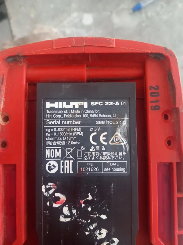 دریل شارژی هیلتی 22 امپر خالی بدون شارژر و باتری به شرط تنه سالم نیاز به باتری و شارژر داره