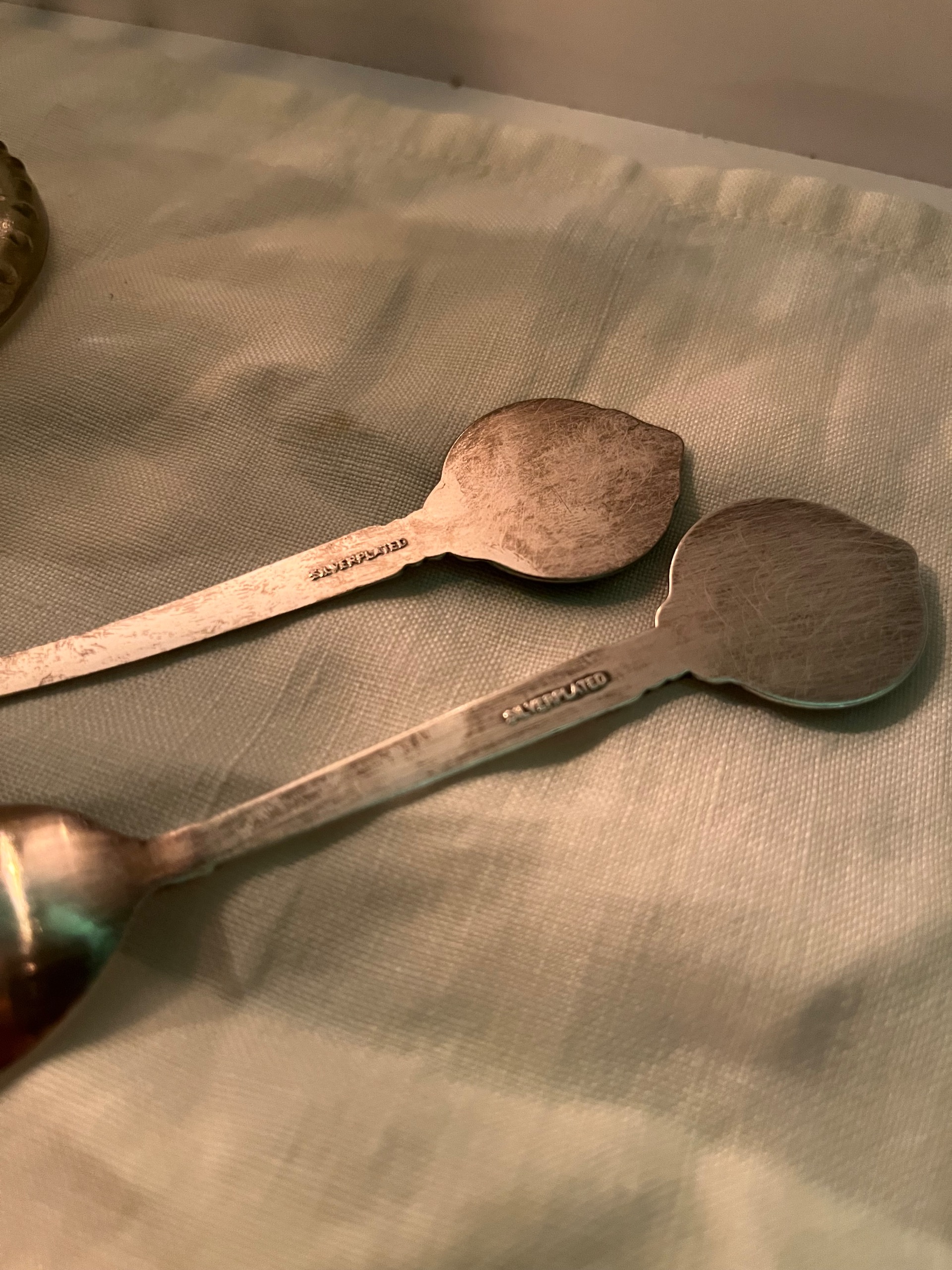 قاشق قدیمی کلکسیونی مارک حک شده سیلورپلیت به صورت جفت